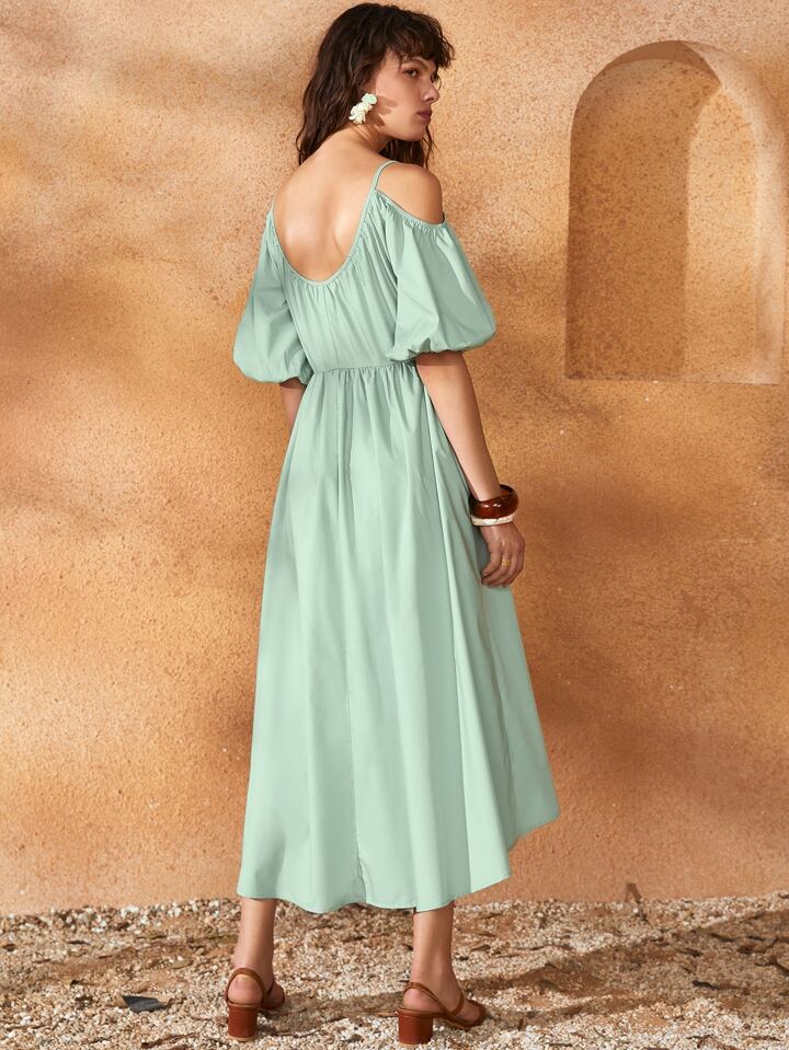 فستان عارية الذراعين بربطة أمامية الصاف بوهو