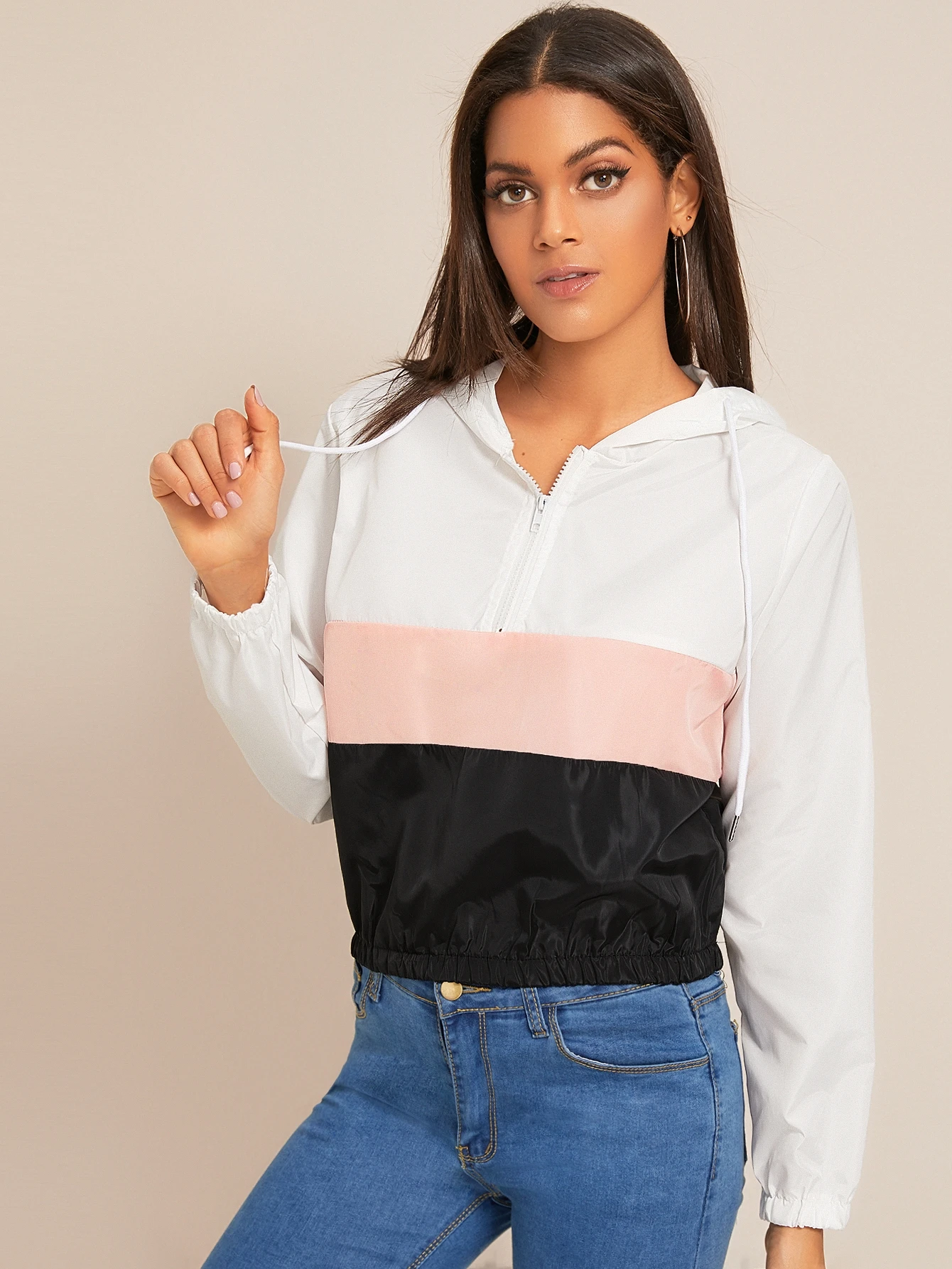 جاكيت بأربطة وبنصف فتحة عنق بسستة وبالوان متجانسة