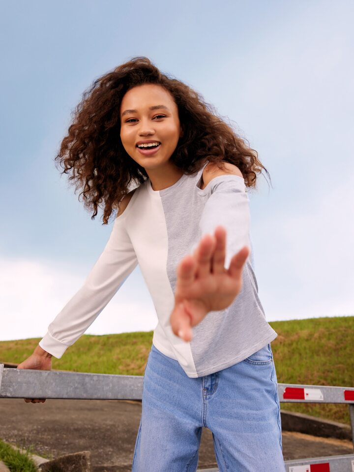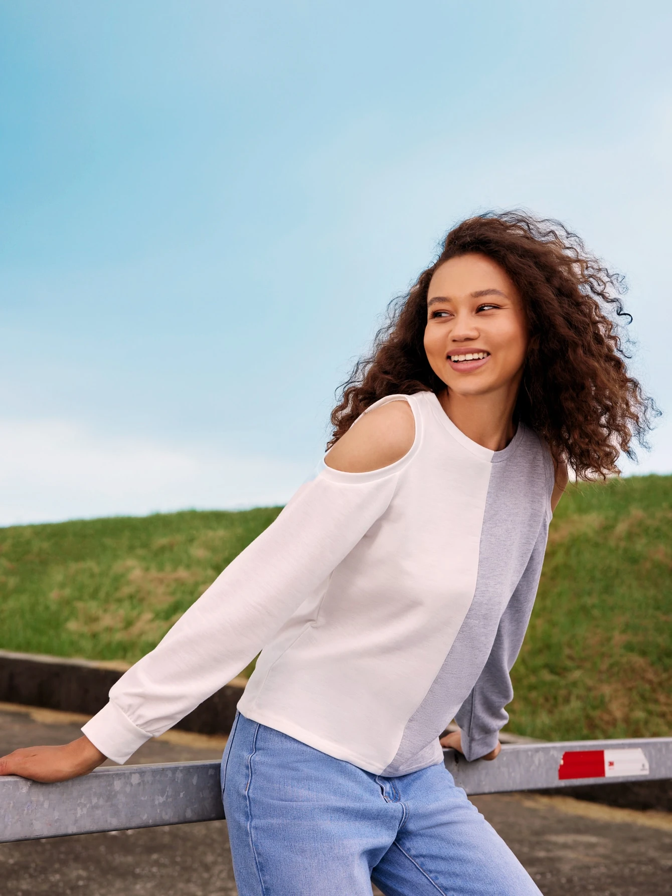قمصان نسائية مثقوب حاجز اللون كاجوال