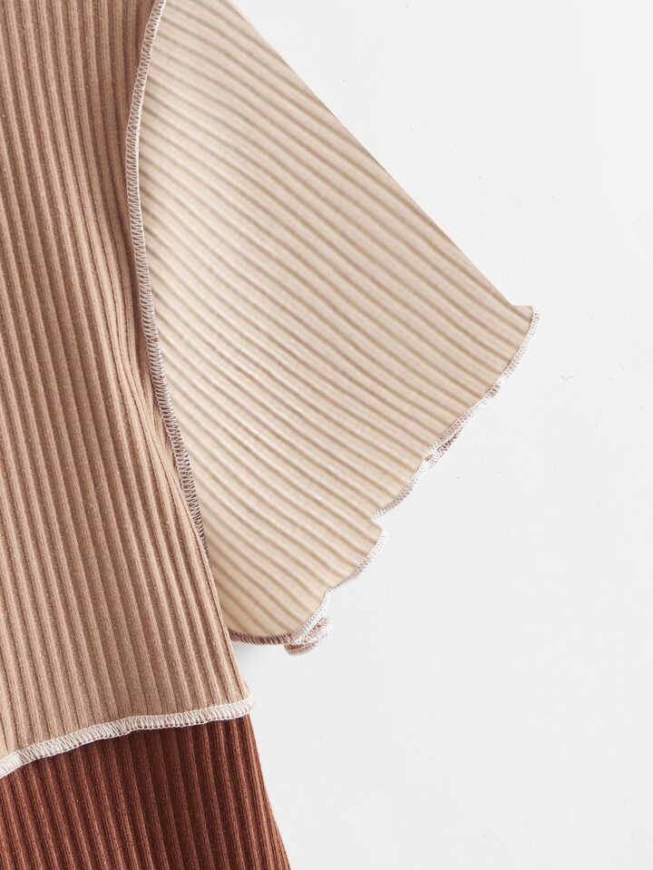 بلوزة محصولة بأكمام قصيرة و ياقة رياضية وتصميم مقطع بألوان مختلفة