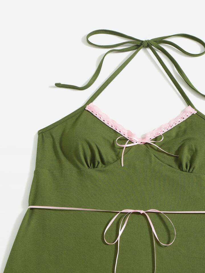 فستان برسن دانتيل متباين اللون مزخرف بقوس