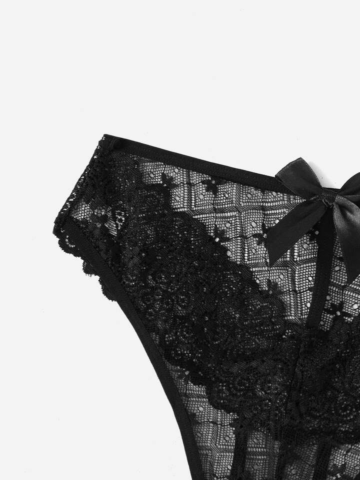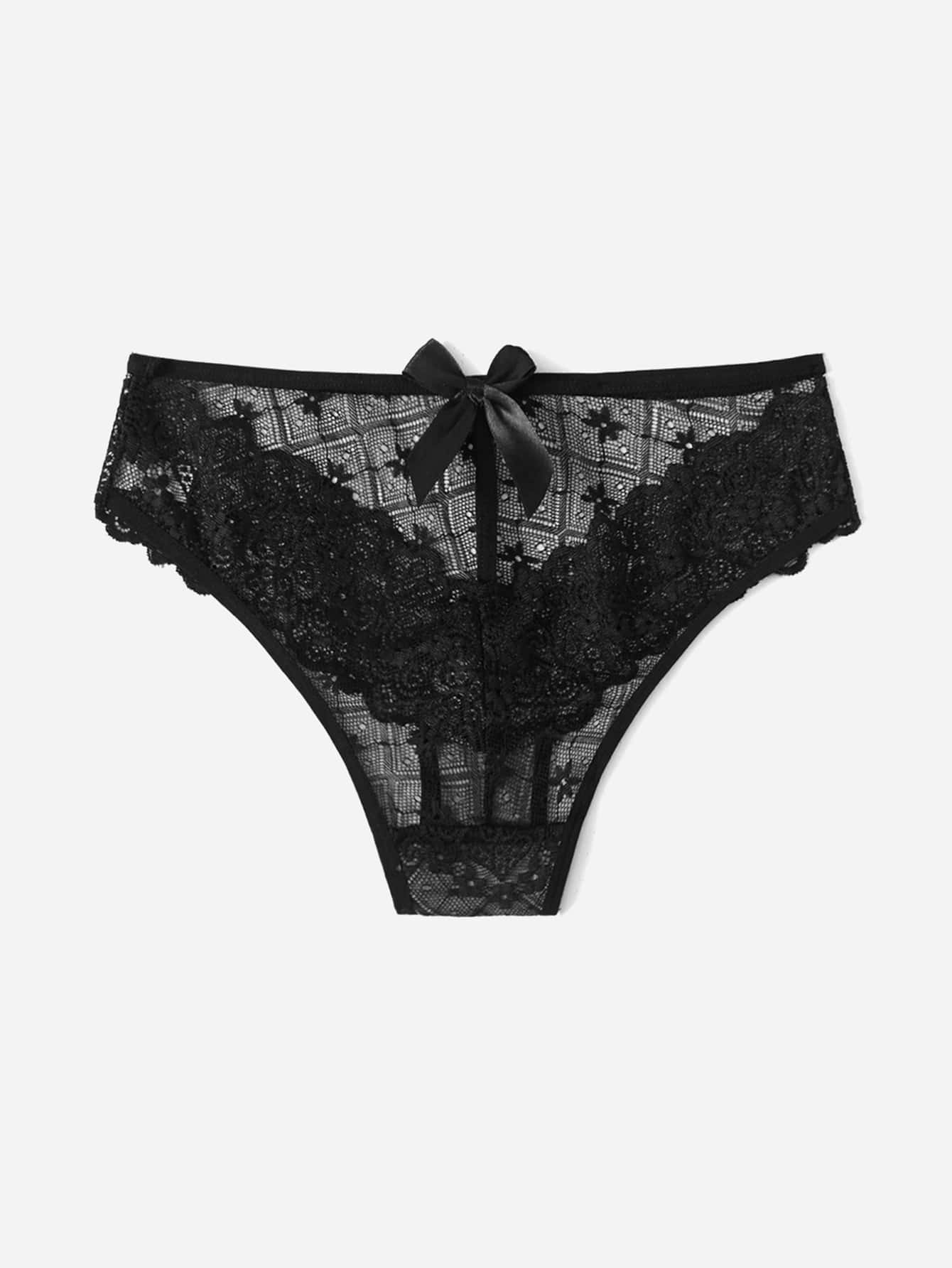 سروال داخلي دانتيل متباين اللون مزخرف بعقدة الفراشة