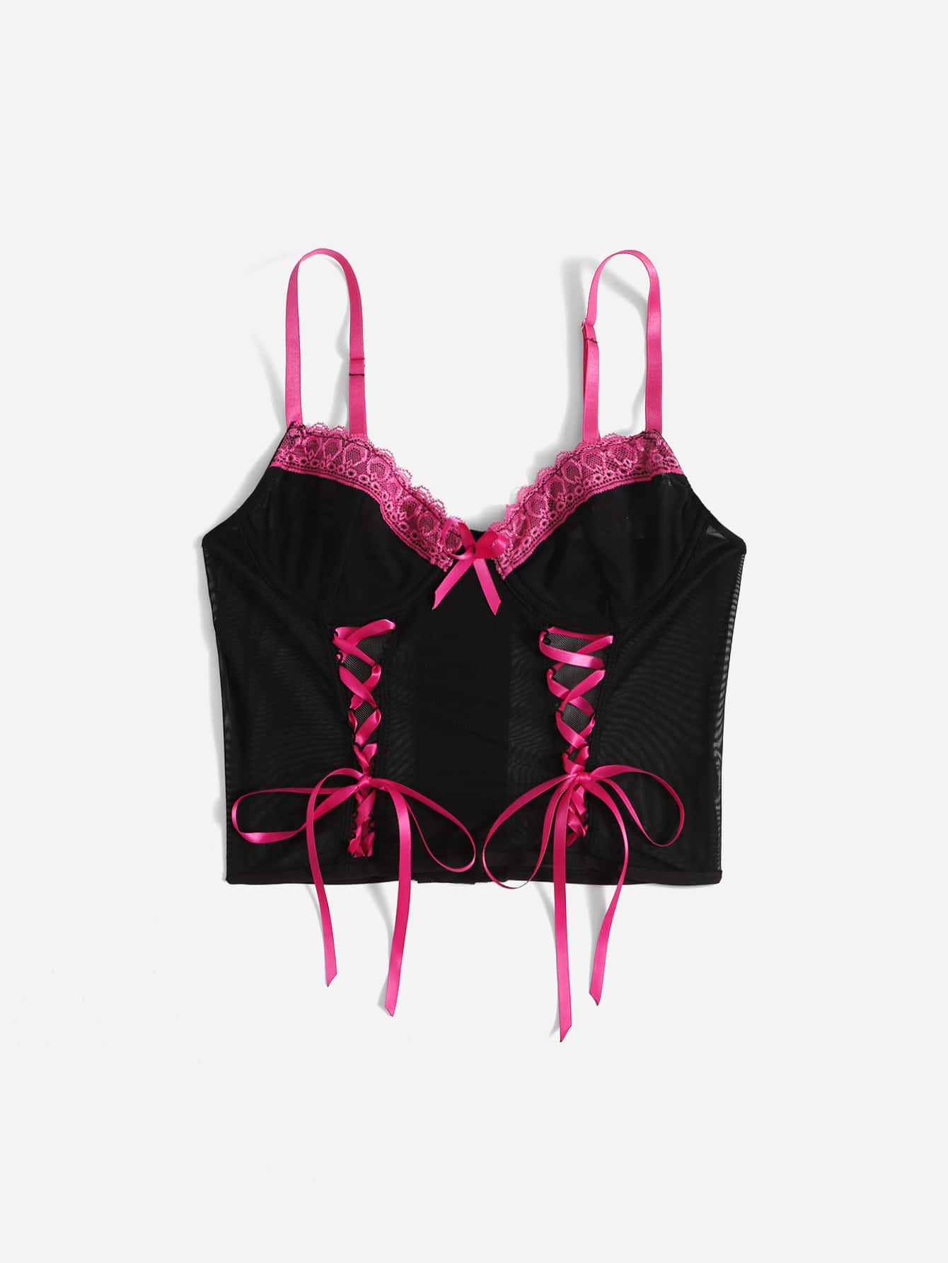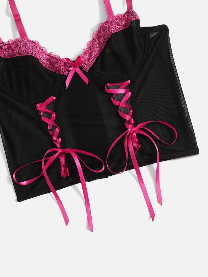 ملابس داخلية خط طويل دانتيل متباين اللون