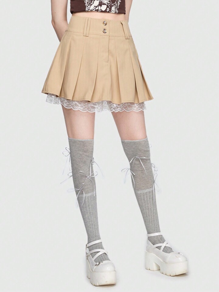 تنورة ذو تجاعيد دانتيل متباين اللون