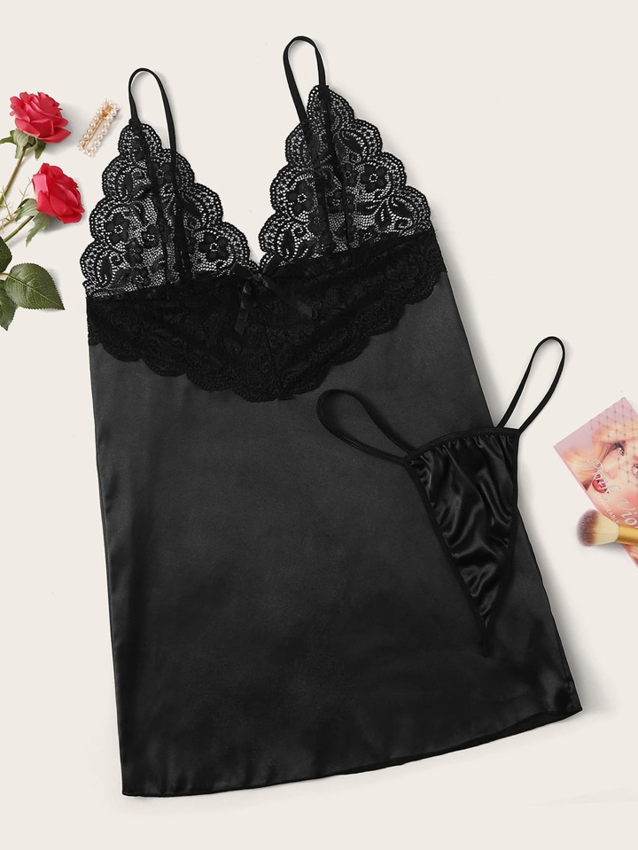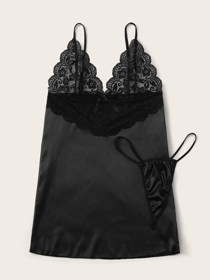 فستان ساتان دانتيل متباين مع لباس داخلي