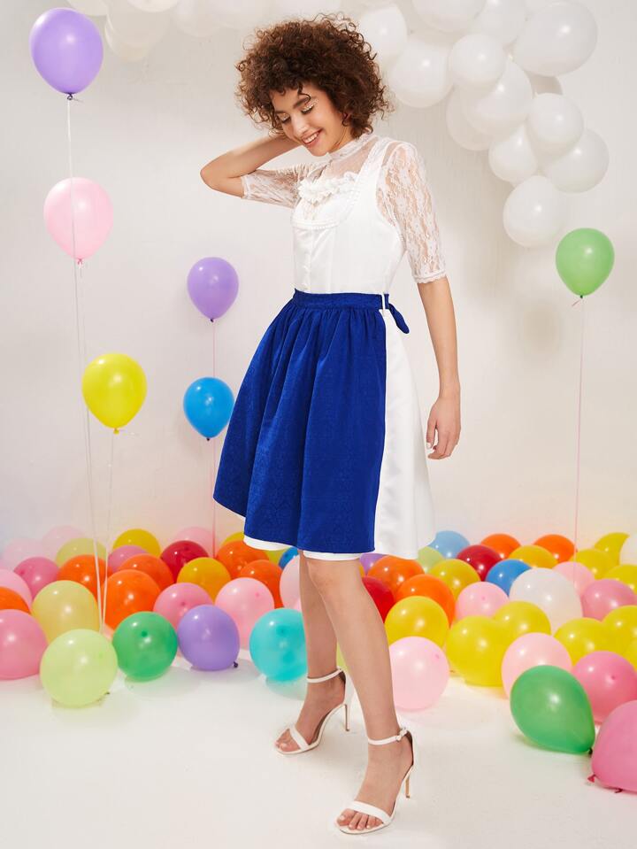 دانتيل متباين اللون بربطة ظهر فستان مع قابل للإزالة مريلة
