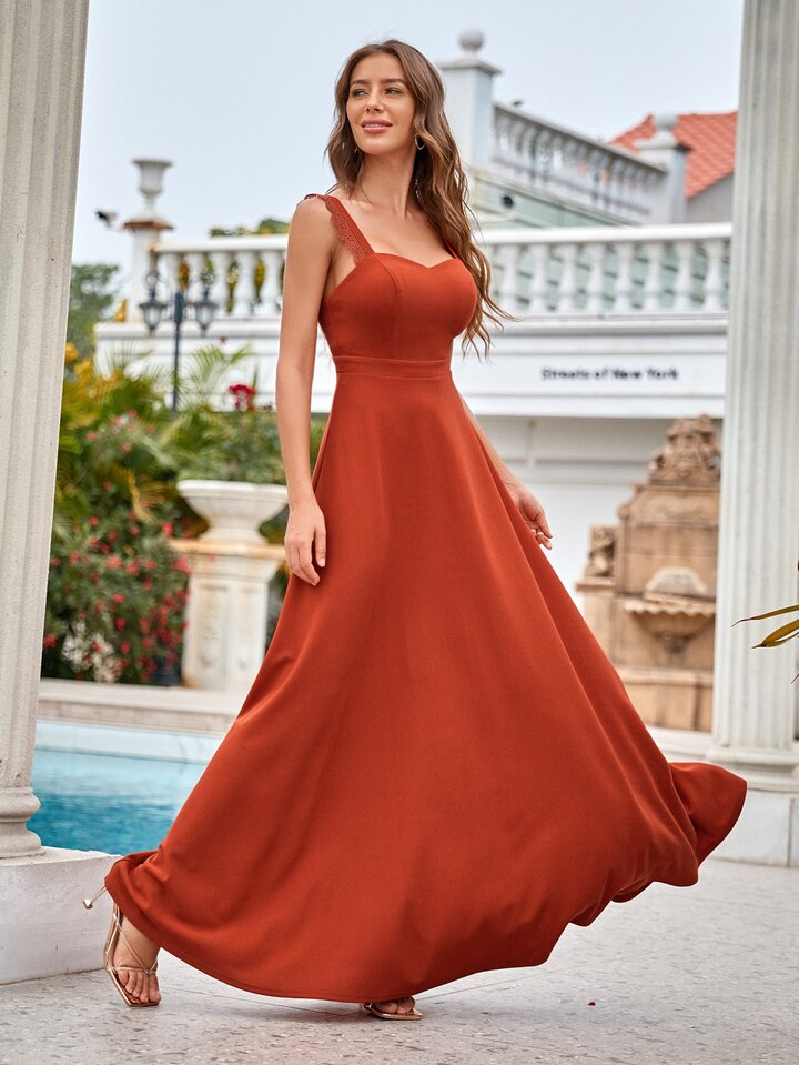فستان وصيفة العروسة مقلم بدانتيل متباين حزام