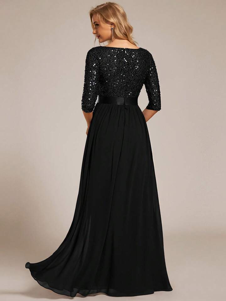 فستان كشكش حفلات مسائية من الشيفون، بجذع مزين بترتر