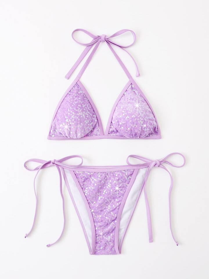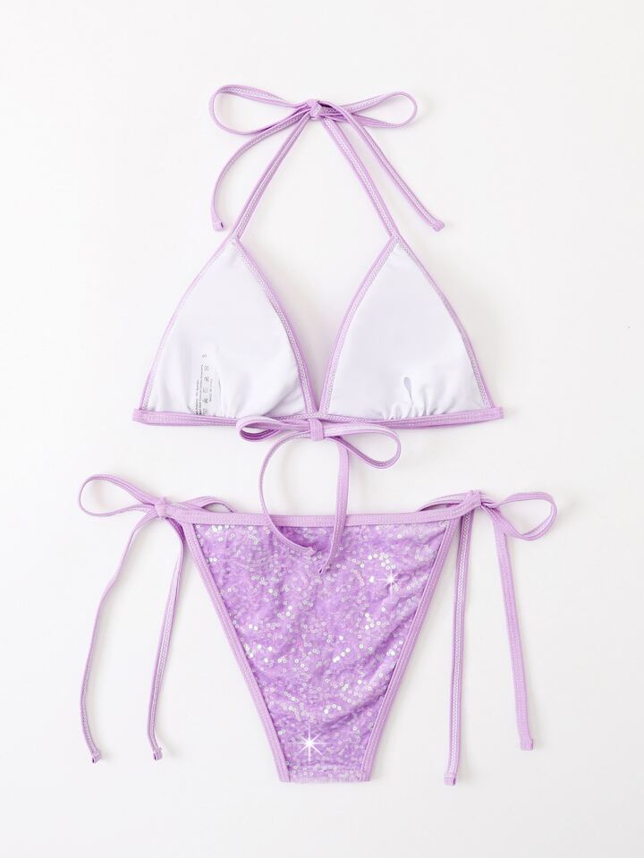 بيكيني مثلث مايكرو مزين بخيوط براقة وجوانب رباطة