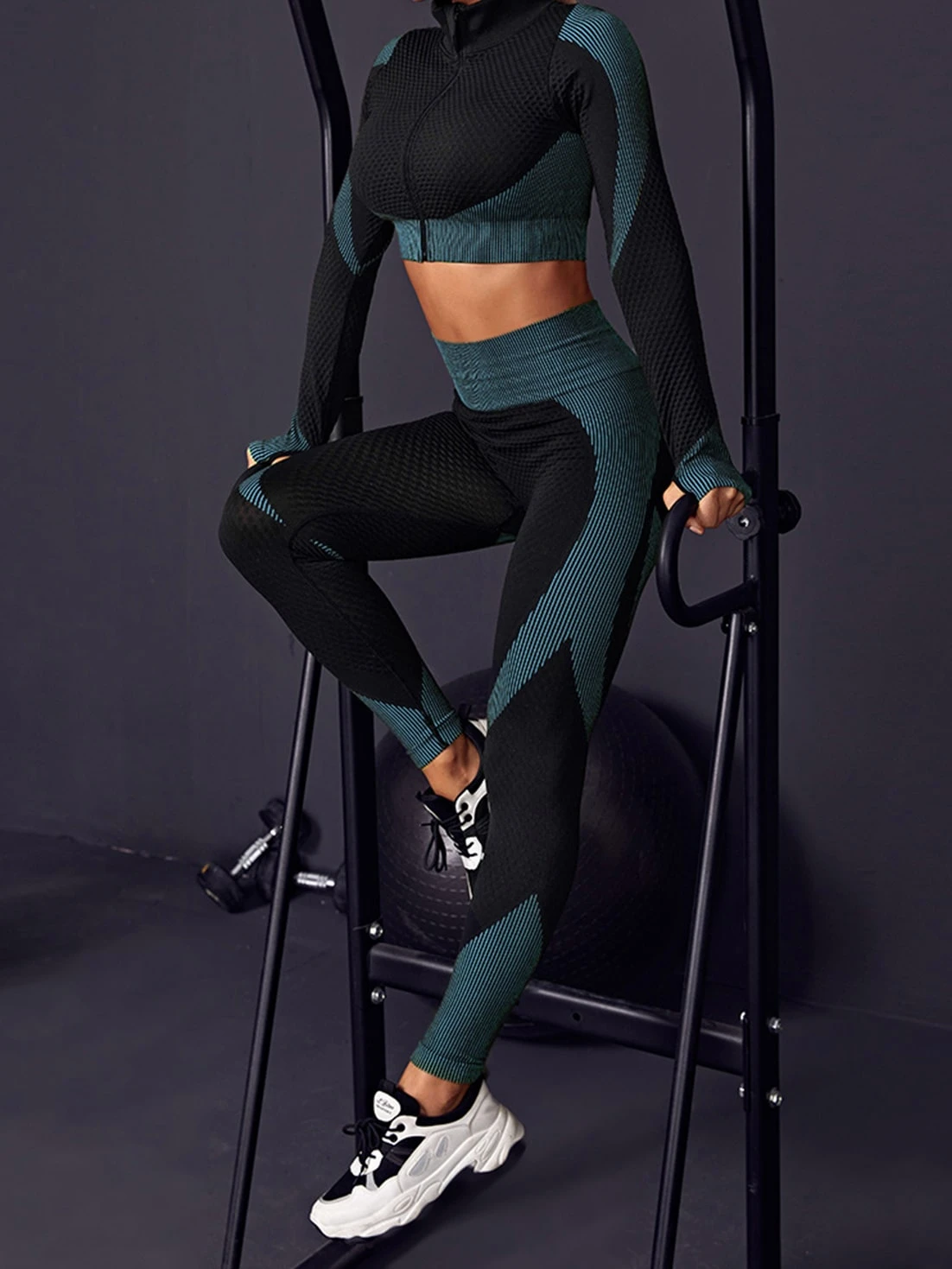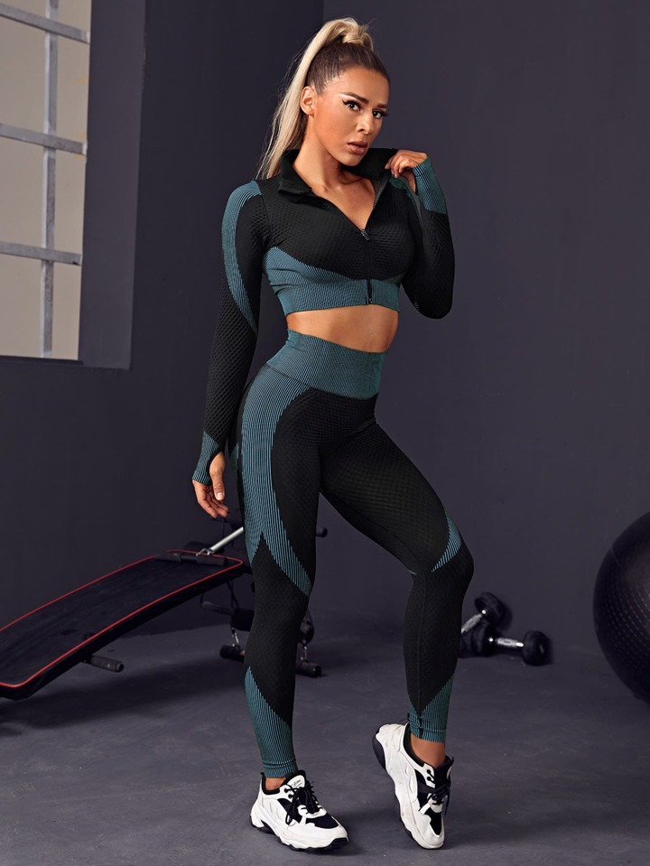 طماق مع جاكيت رياضي بفتحة ابهام وبسستة مخطط متباين