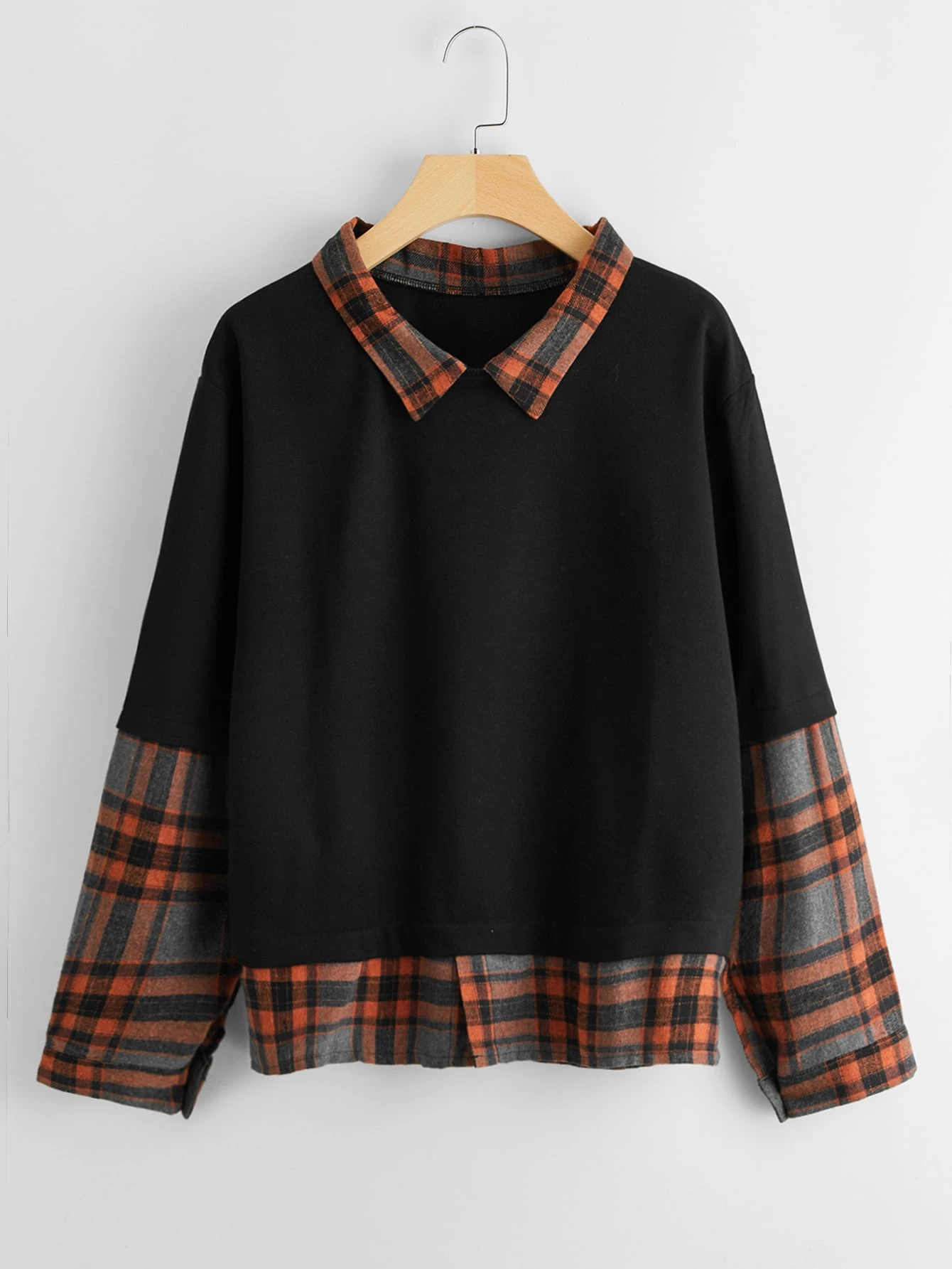 بلايز ثقيلة قماش صوفي مقلم كاجوال