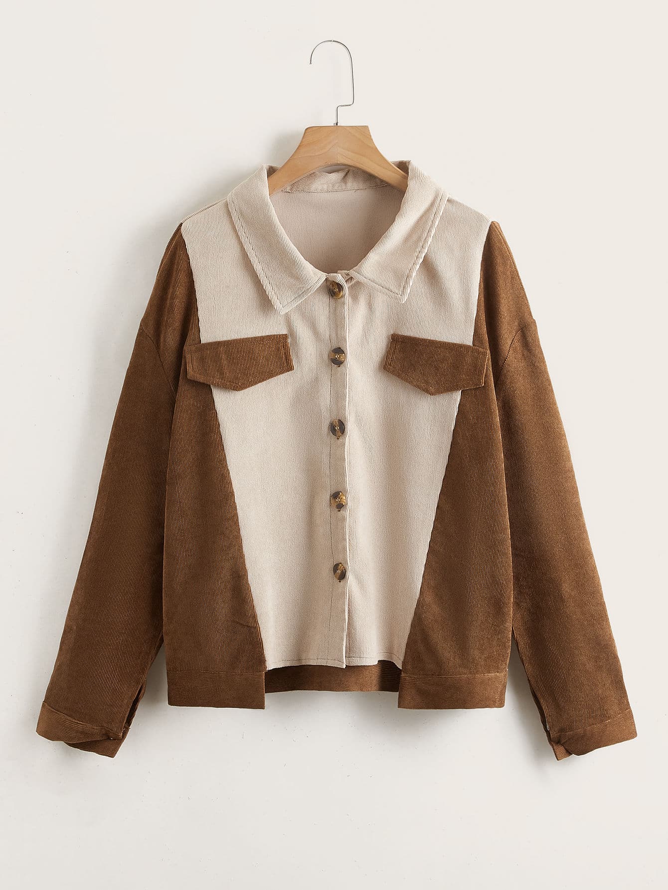 معاطف نسائية بازرارأمامية حاجز اللون كاجوال