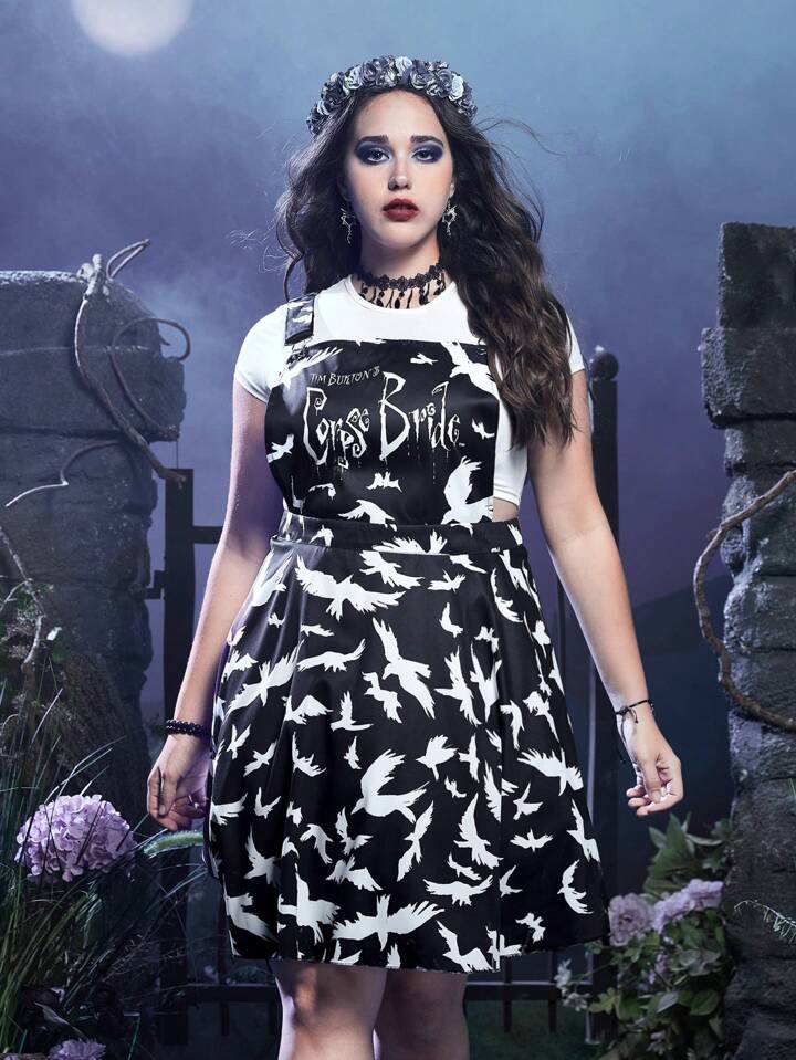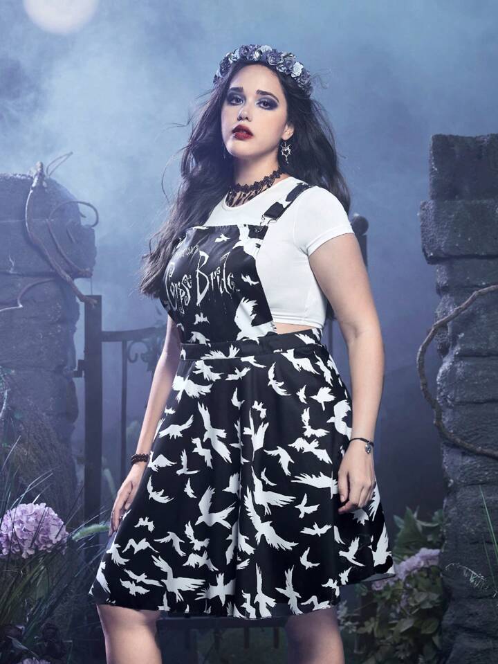 Corpse Bride | ROMWE فستان افارول طائر طباعة بدون تي شيرت مقاس كبير