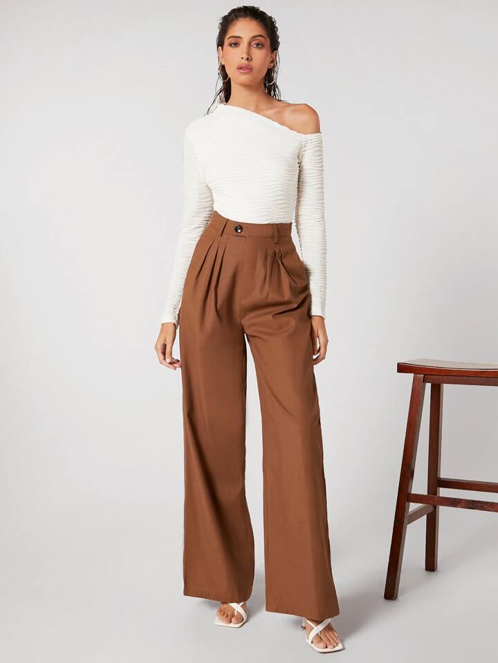 بنطلون قطن موحدة اللون تجاعيد مطوية ملابس العمل