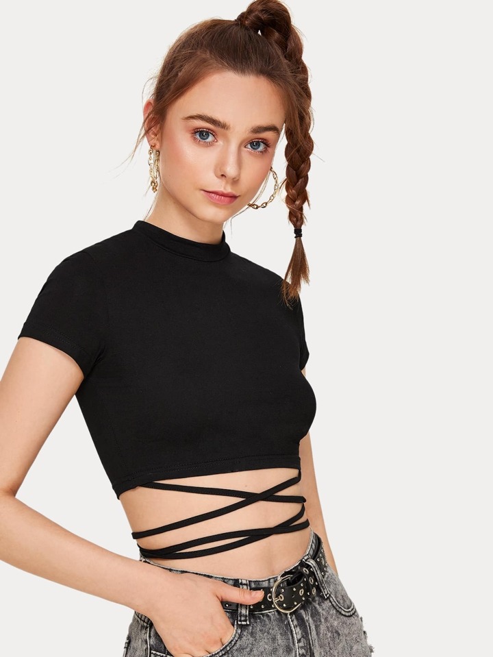 ثوب قصير واللون الخالص وحافة الرباط المتشابك