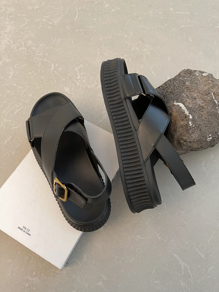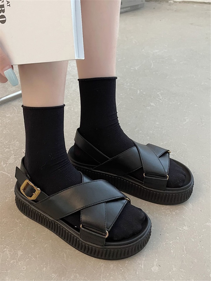 صنادل أسافين وصنادل بنعل سميك نسائية مشبك الصاف حزام بالصنادل إلى الجبهة موضة