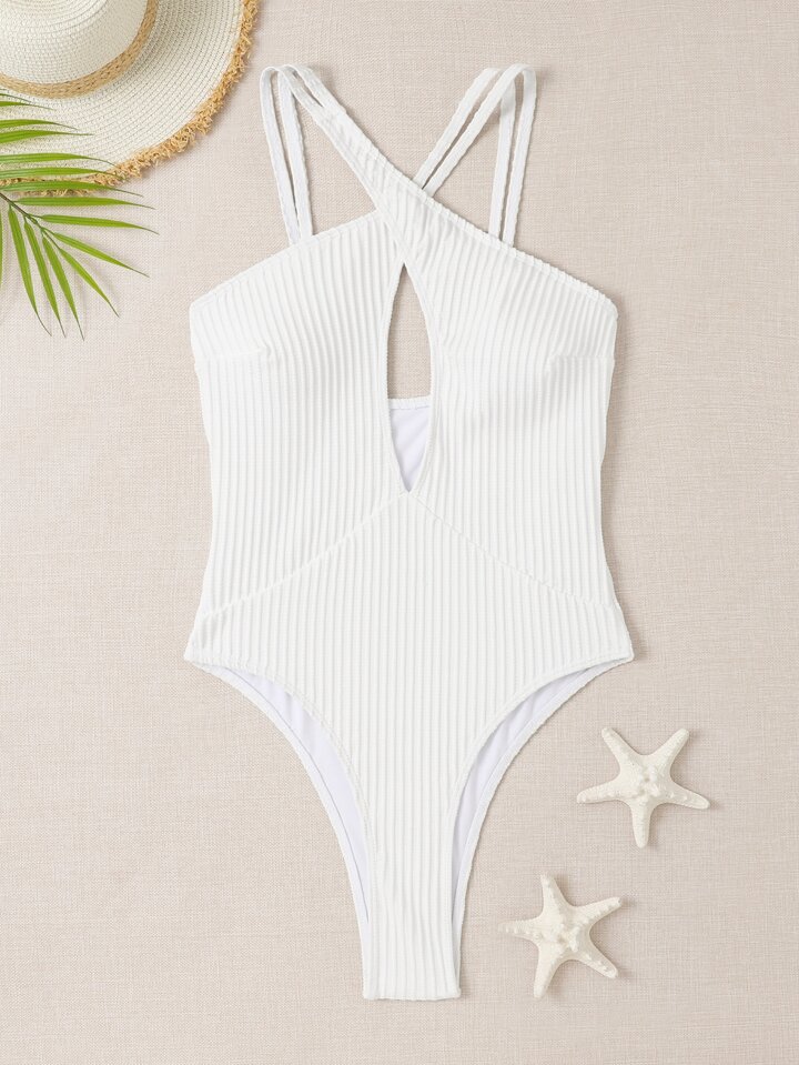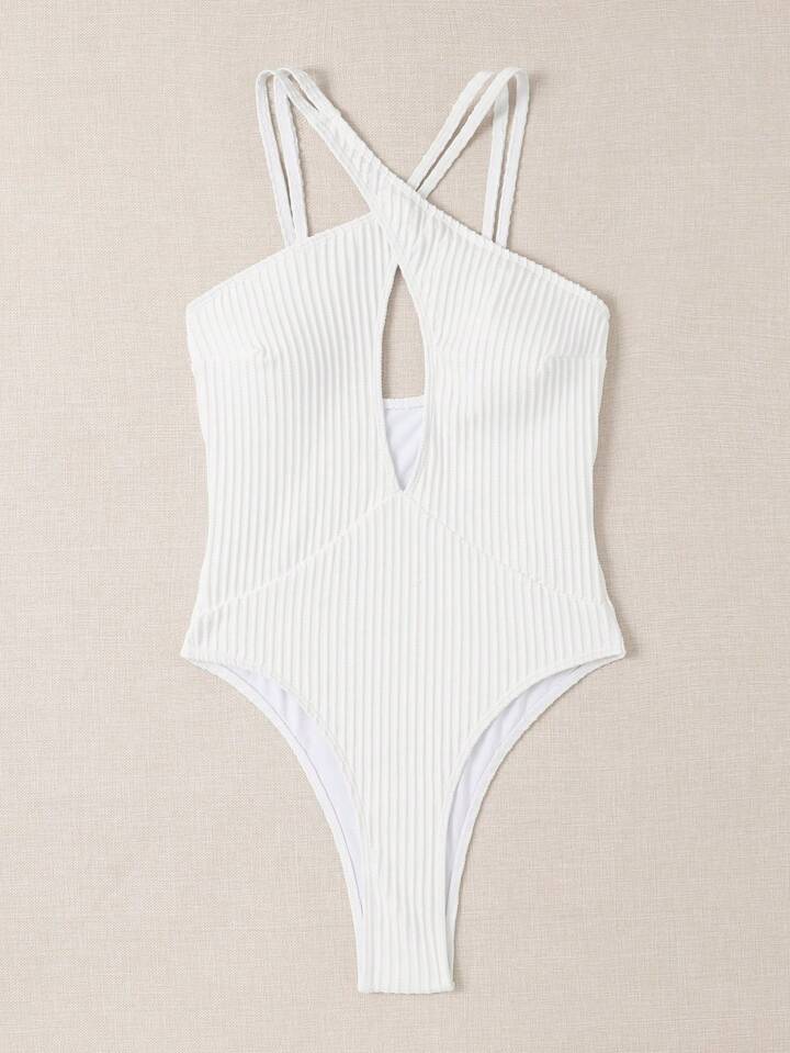 ملابس سباحة قطعة واحدة قص مجوف متقاطع أمامي