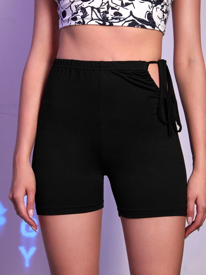 شورت ركوب الدراجات النارية قص مجوف رباط