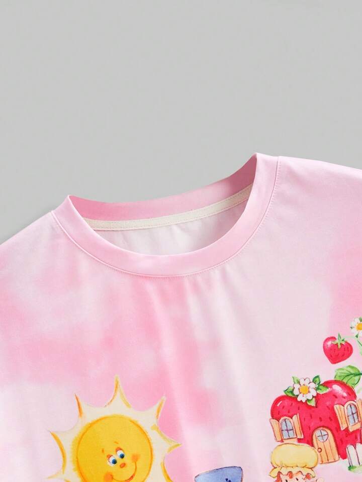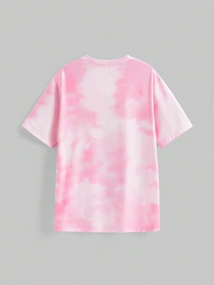 تي شيرت تي-شيرت بأكمام قصيرة فضفاض بطباعة رقمية بصبغة ربط متميز بشخصية كرتونية محبوبة، صيفي