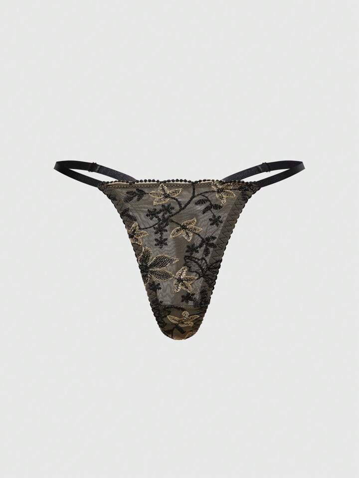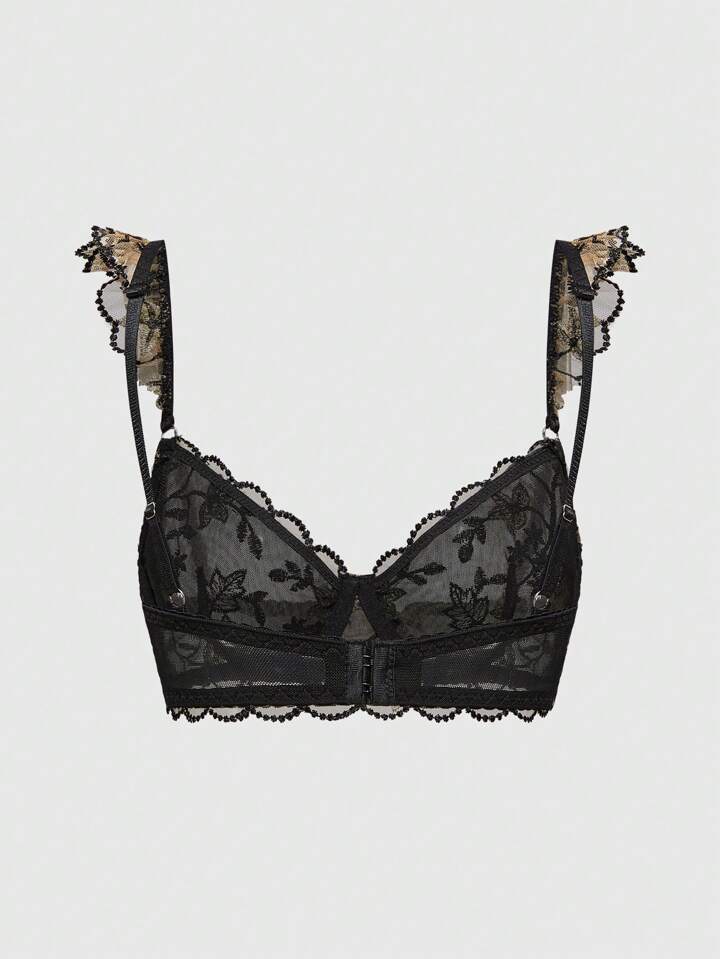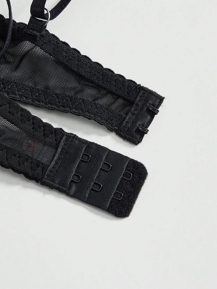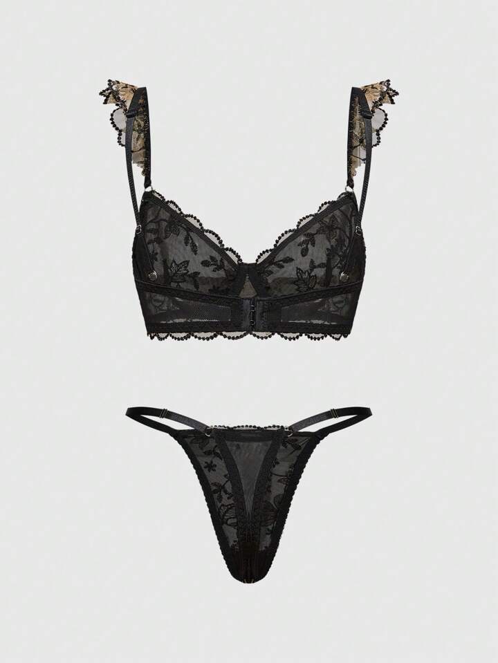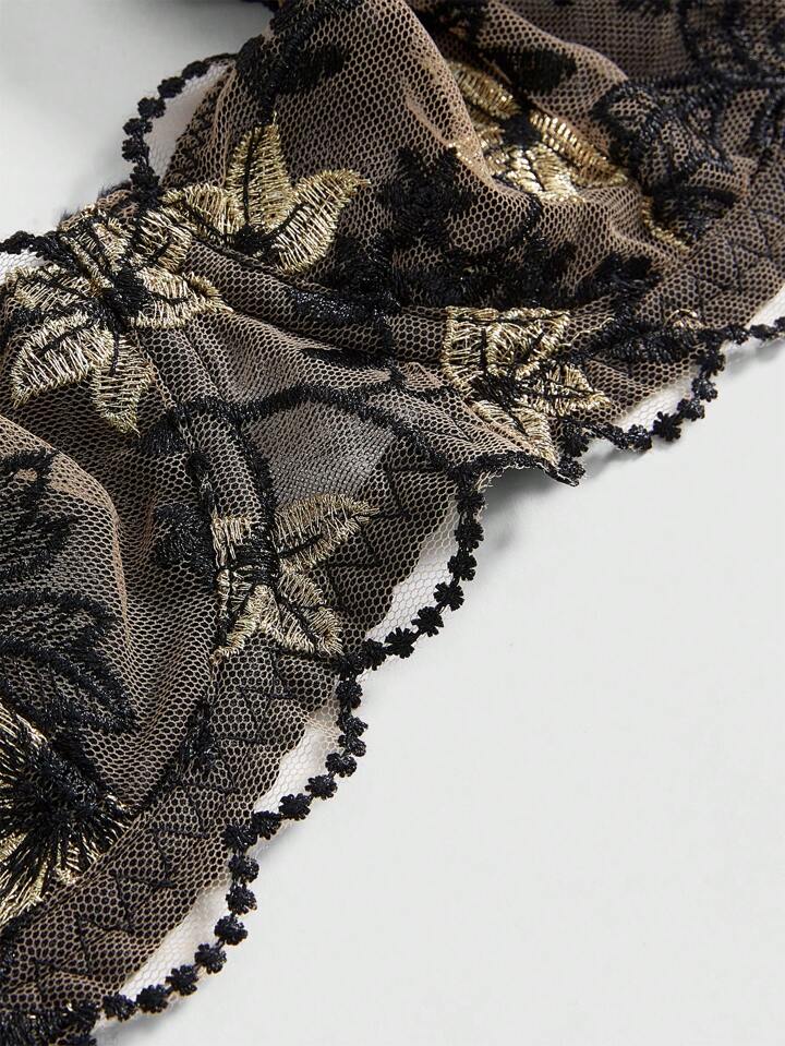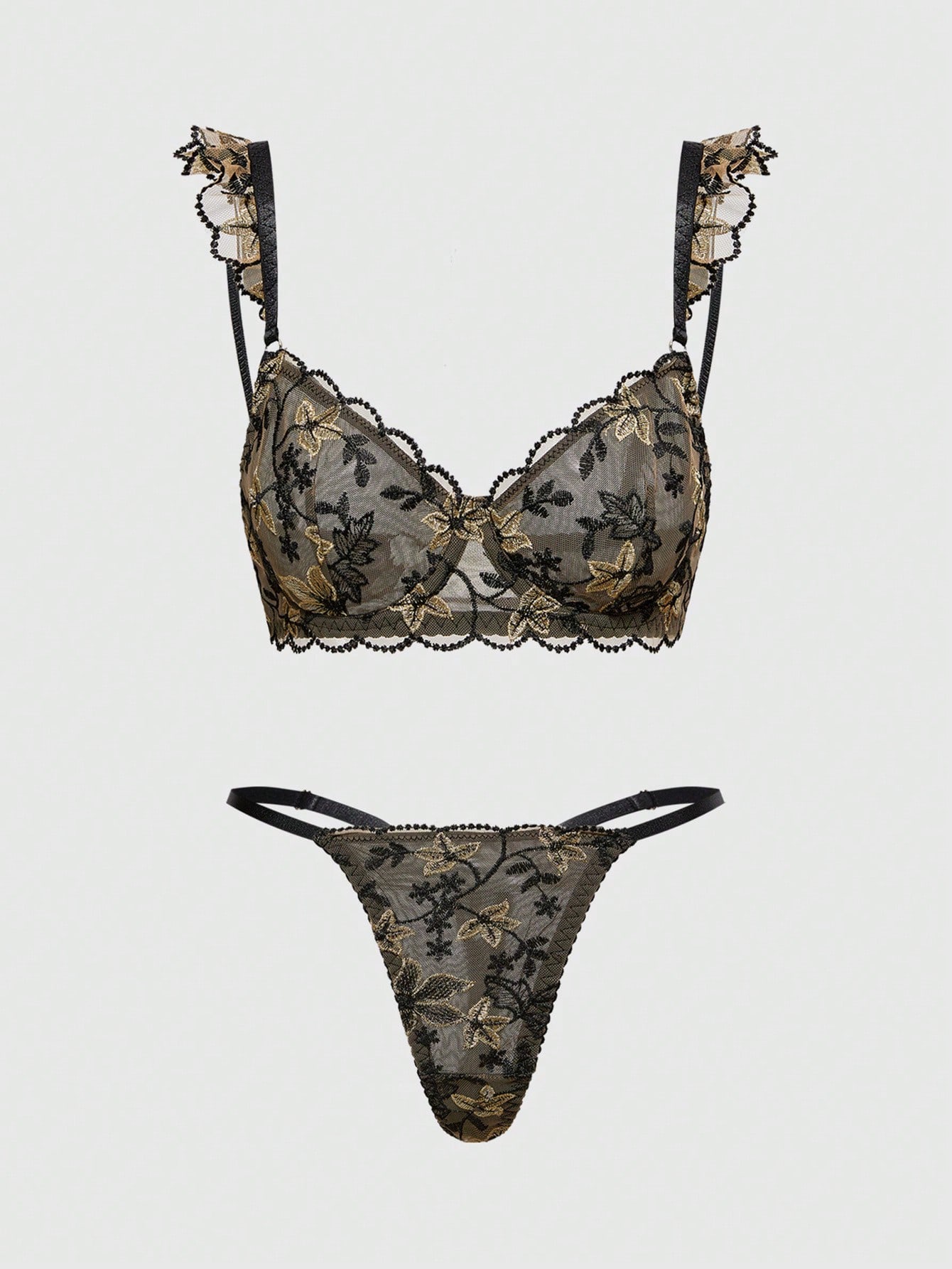 Goth طقم ملابس داخلية من البرا ذات العمود الفقري والسروال العصري المطرز بتصميم الزهور الغوطي الداكن