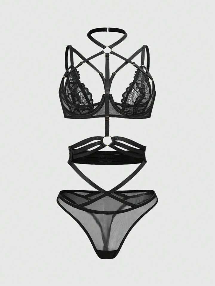 Goth طقم ملابس داخلية حاكم العنق القوطي الداكن من صدرية الحديد وسروال الخرج، مثير وجذاب