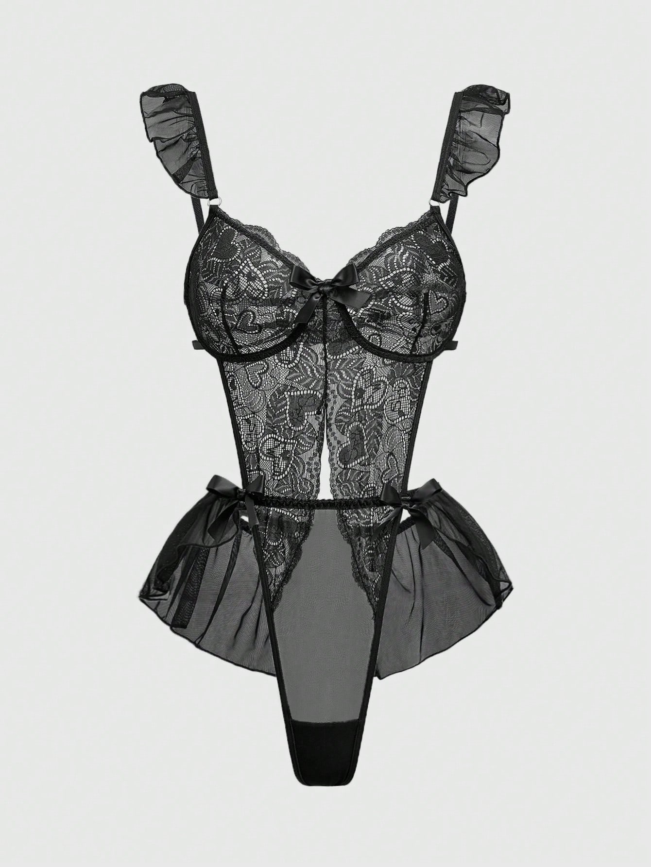 Goth جمبسوت داخلية رومانسية غوتية حالكة، منقوشة بالدانتيل على شكل قلب خالية من الفرجة ، ملابس داخلية مثيرة