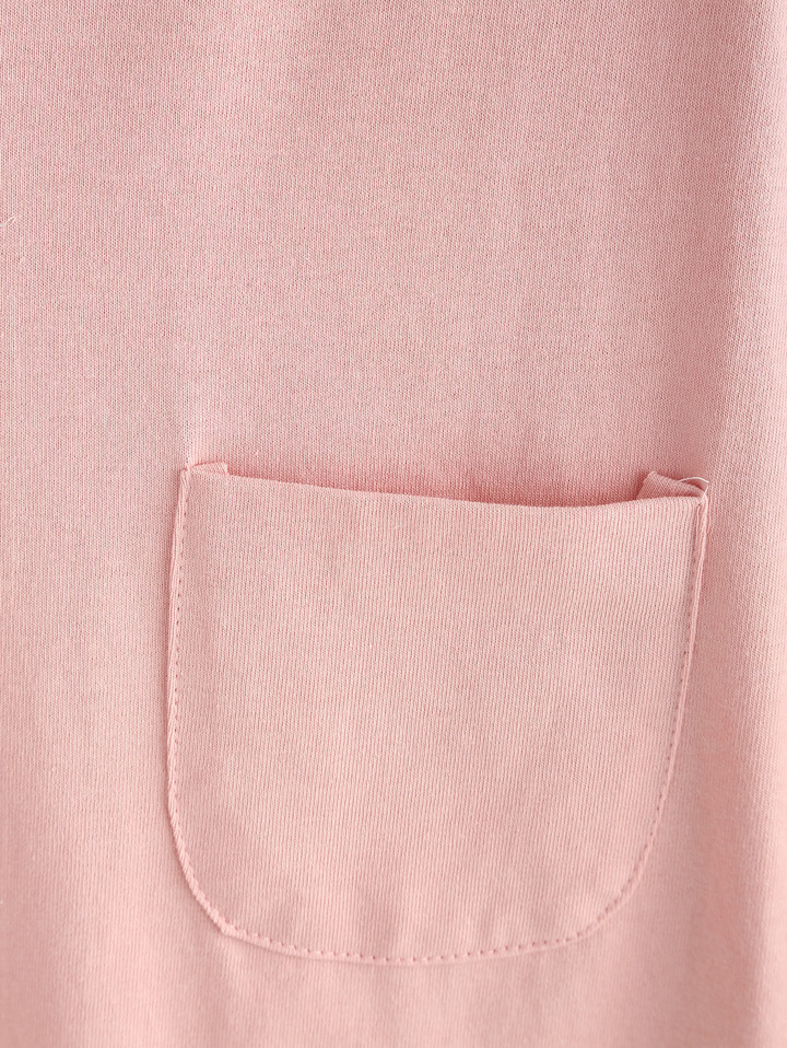 تي شيرت وردي بأطوال مختلفة مع جيب
