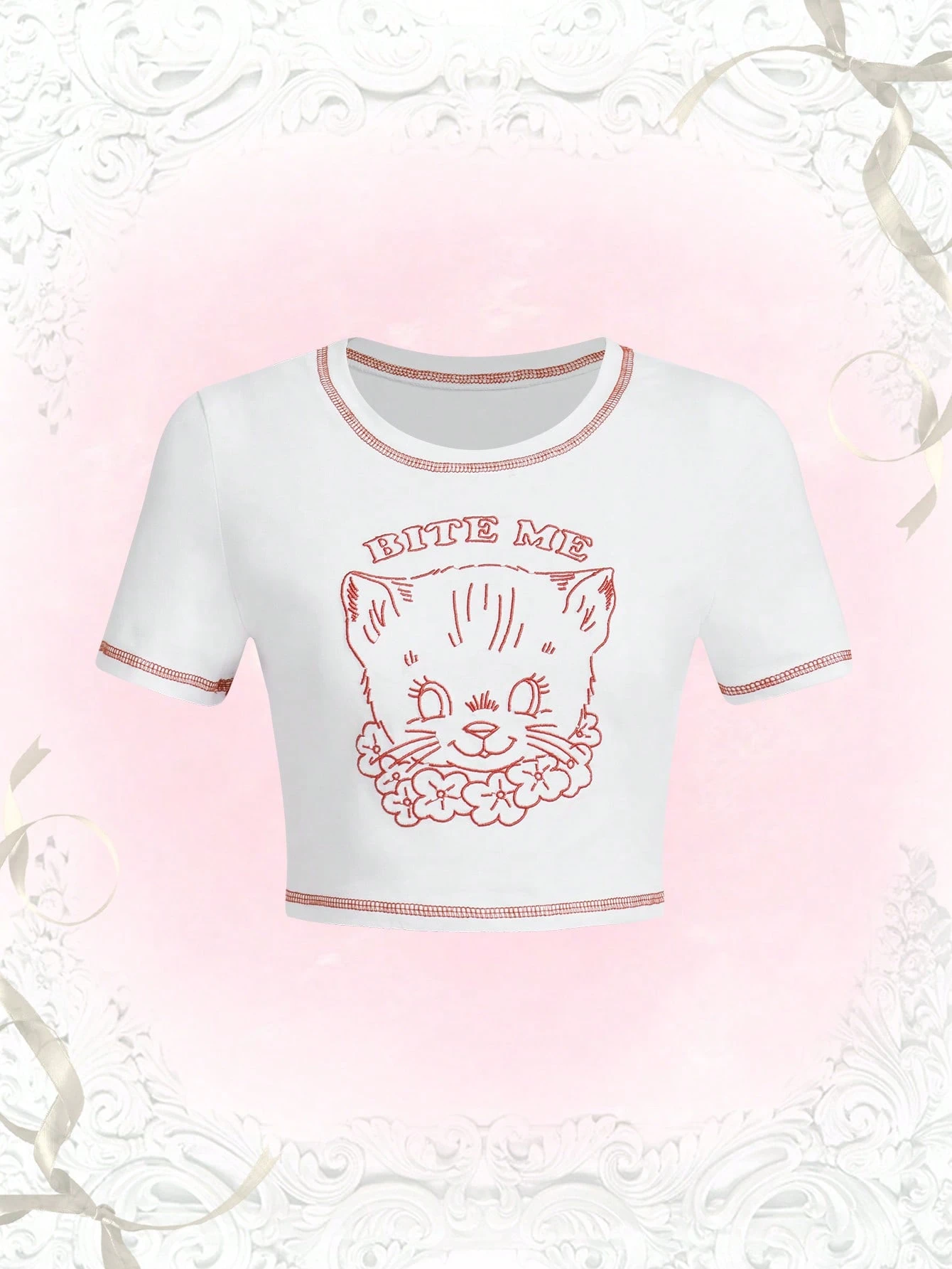 Disco Cowboy تي شيرت قصير مطرز برسوم كارتون شريط منسوج