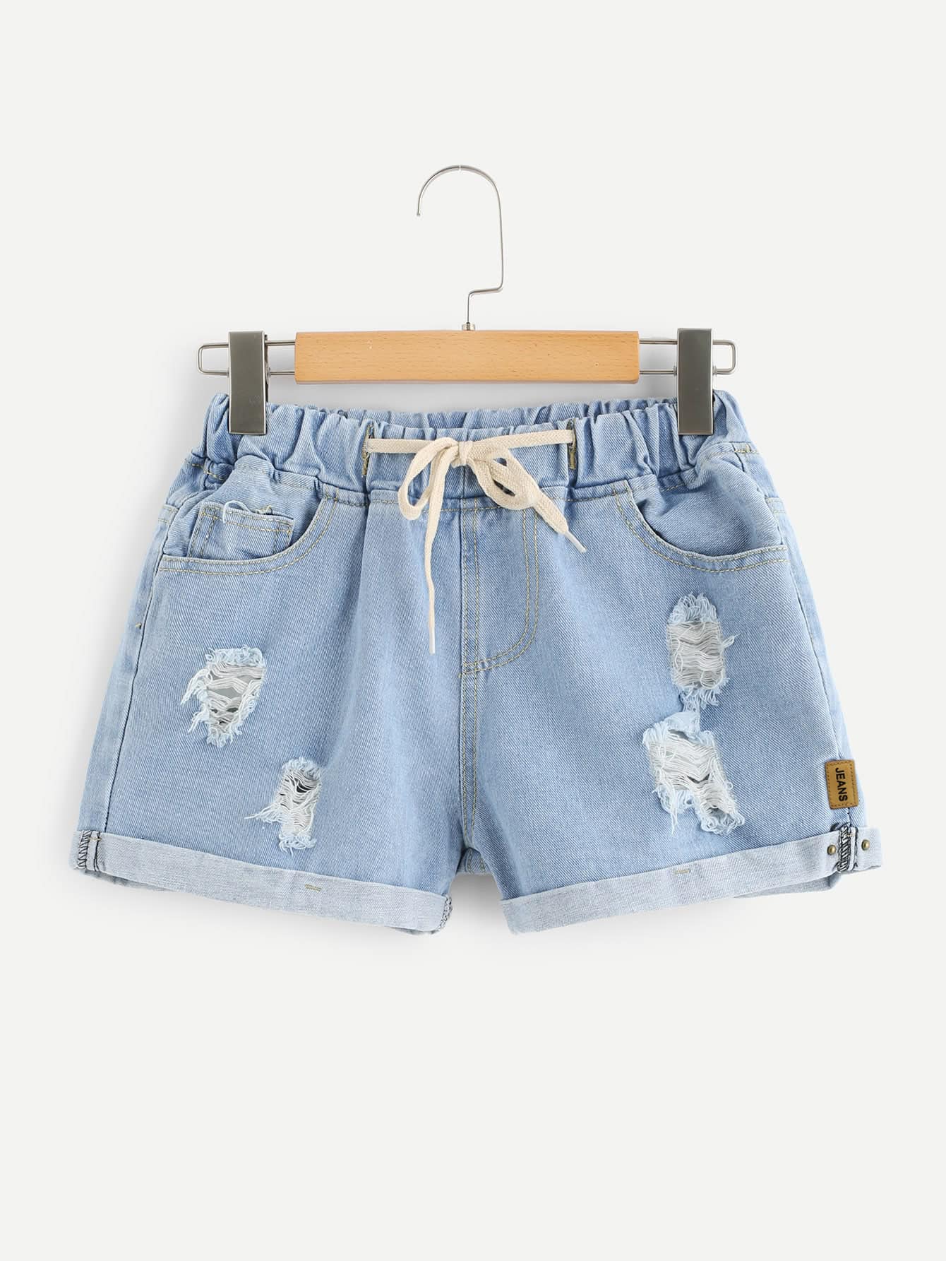 الرباط الخصر ممزق الجينز بنطلون قصير