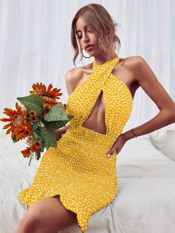 فستان برسن متقاطعة مكشوف الظهر وبطباعة زهر اقحوان