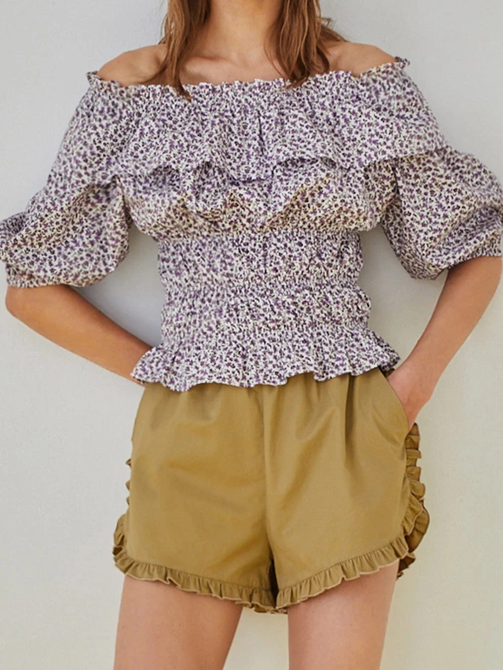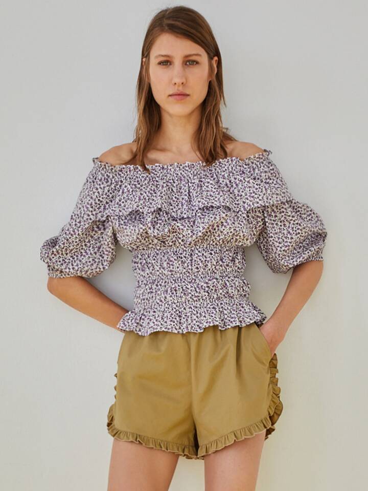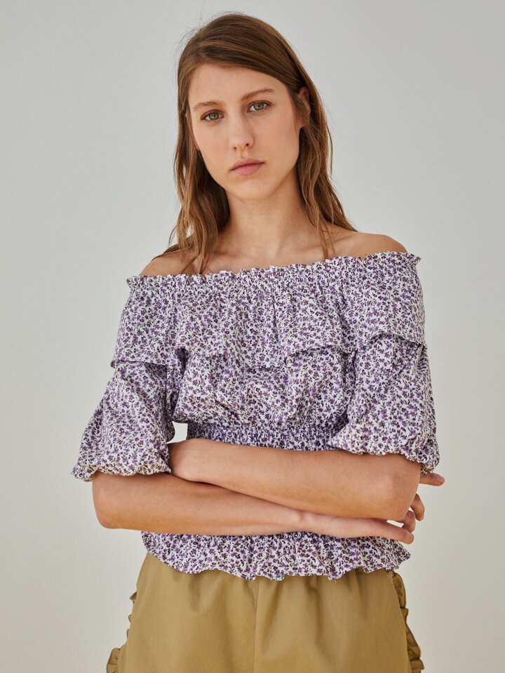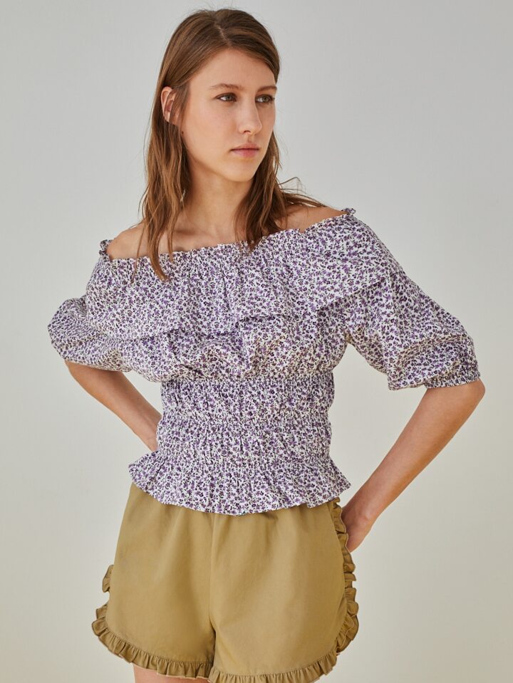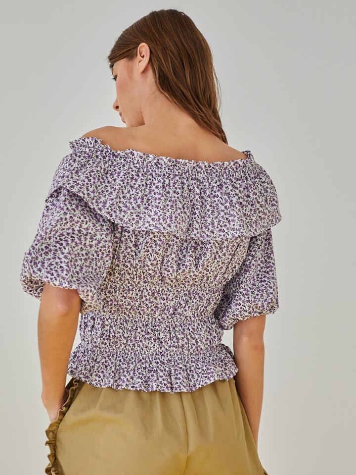 لباس علوي بتفاصيل مكشكش مقلم بكشكش وبزهر اقحوان