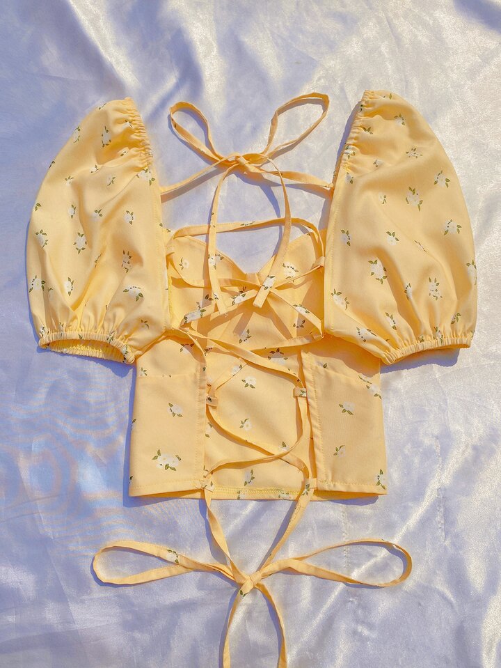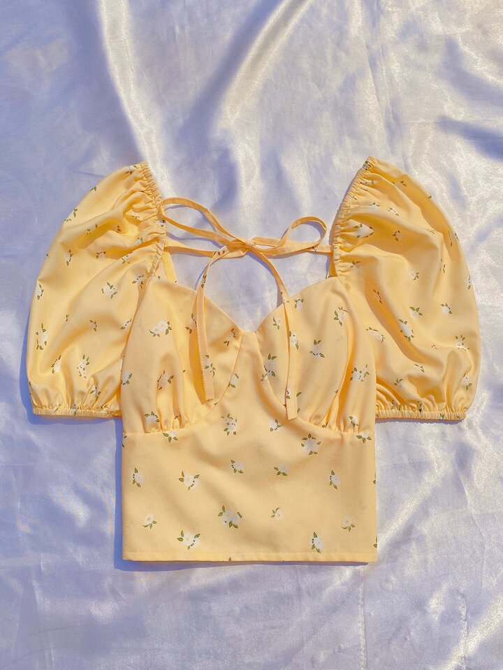 بلوزة زهر ديزي مكشوف الظهر بربطة