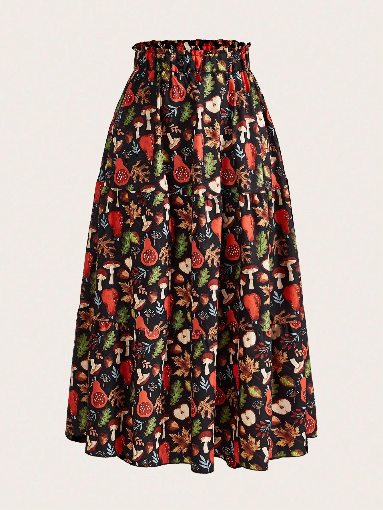 Doodleandpattern تنورة عالية الخصر بنمط نباتي طباعة كاملة ذات تنورة مزدوجة بالتنورة الطويلة والقصيرة العالية