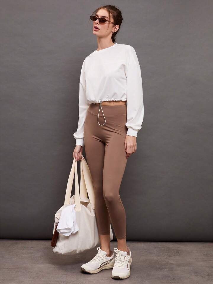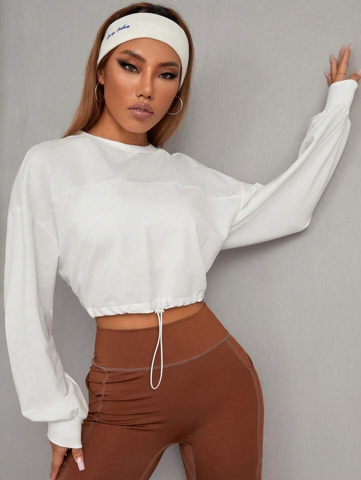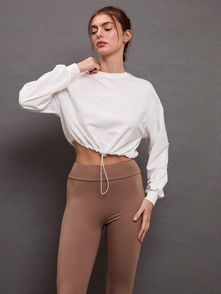 بلوزة رياضية نسائية بياقة طاقم وأكمام طويلة وخصر مربوط بسحاب، قصيرة الطول