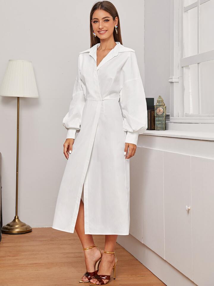 فستان ستايل قميص باكمام فانوس وباكتاف منخفضة