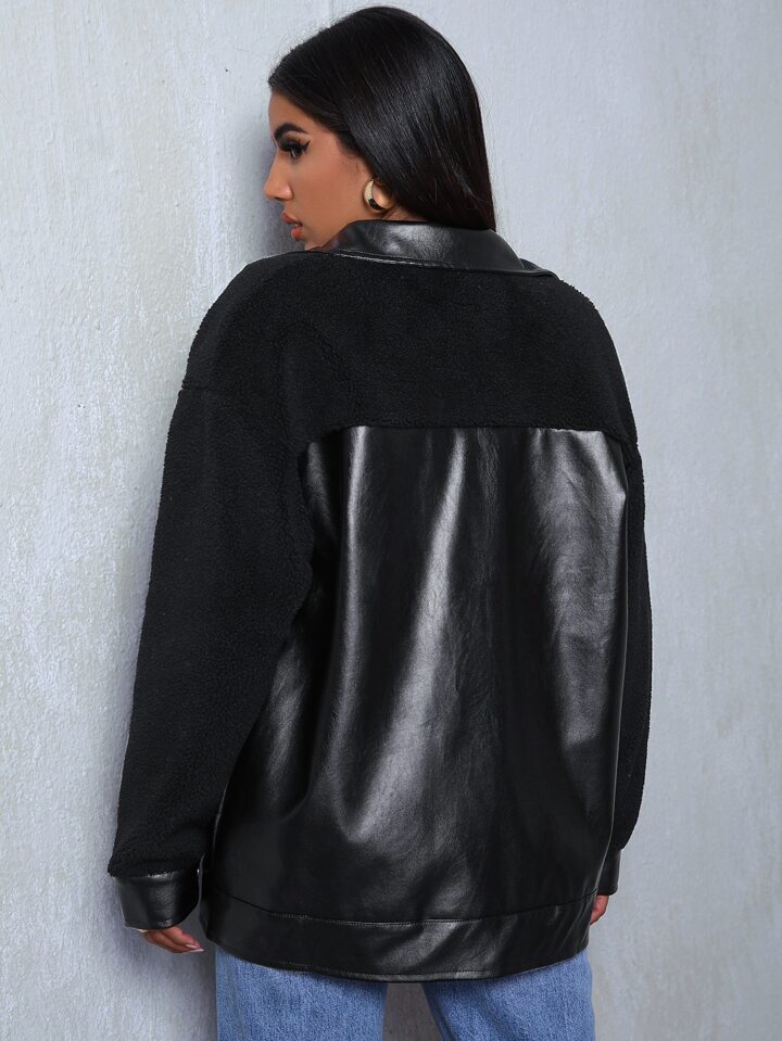 جاكيت بخام مختلط وبأزرار منخفض الكتف