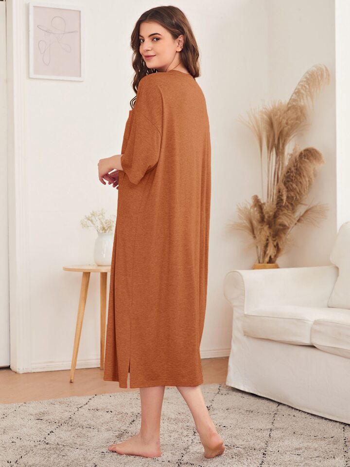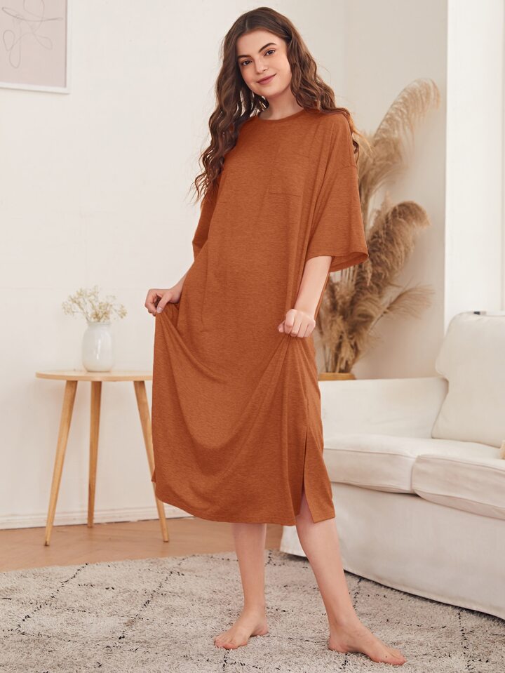 فستان ليلي بجيب مرقع بحافة فتحة ومنخفض الكتف