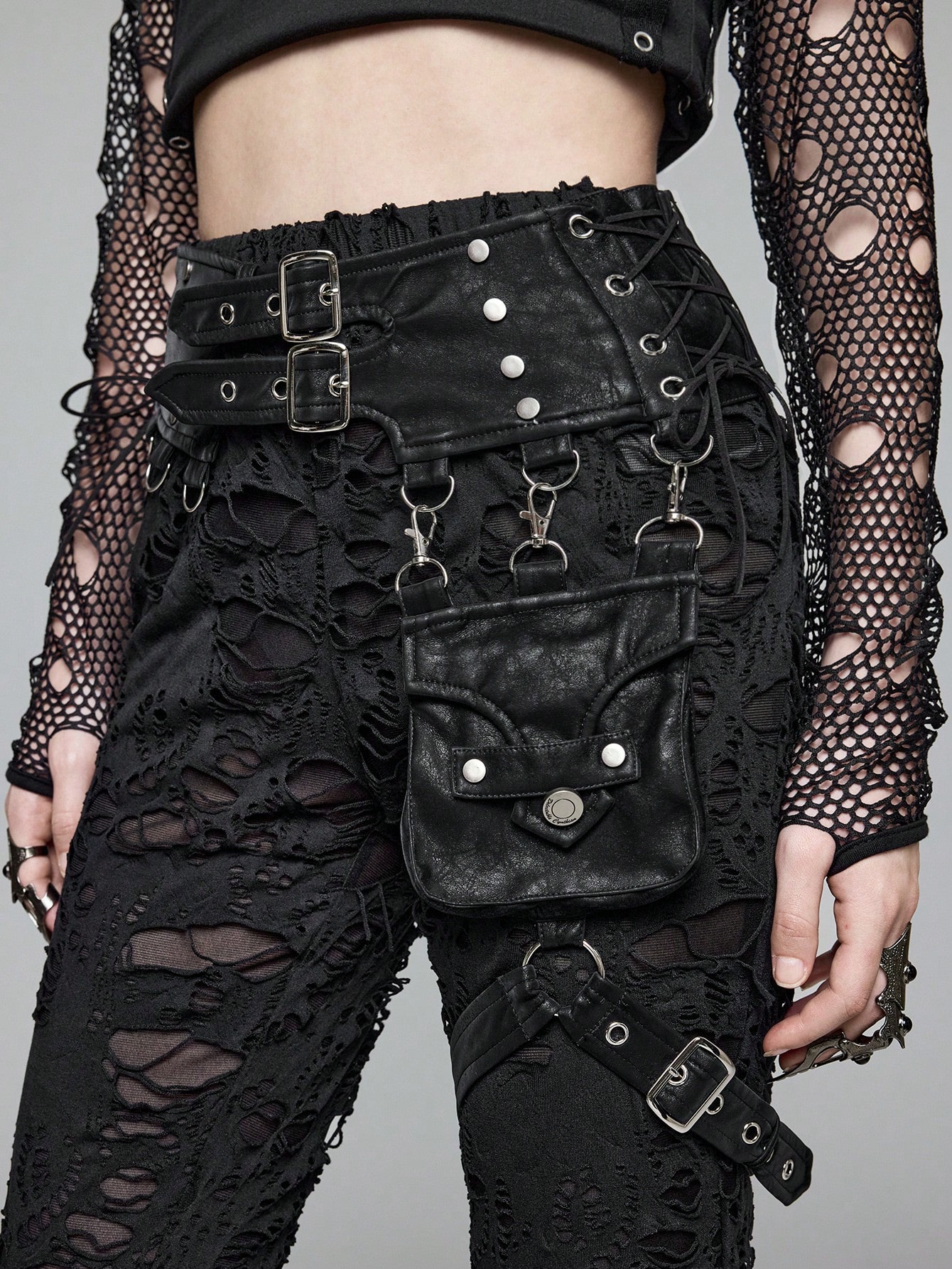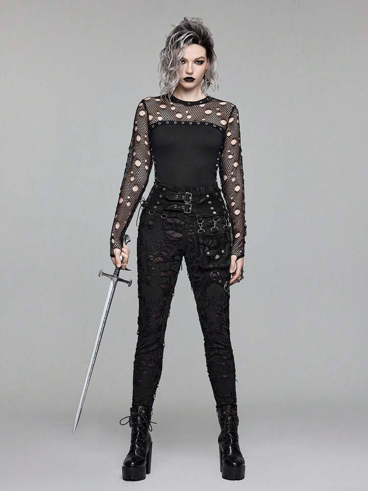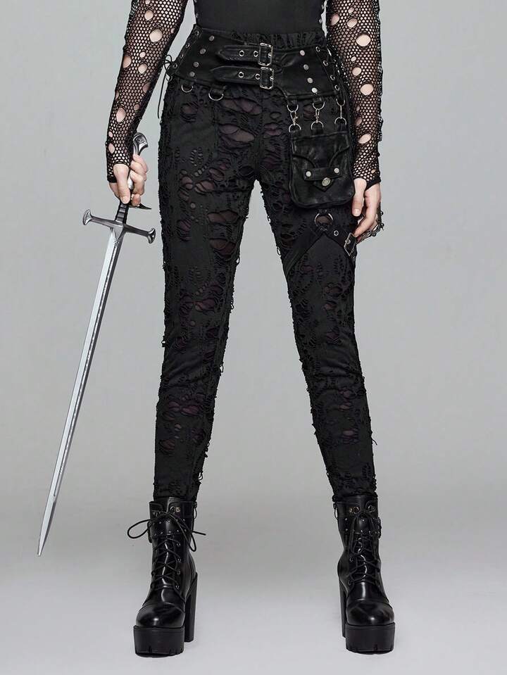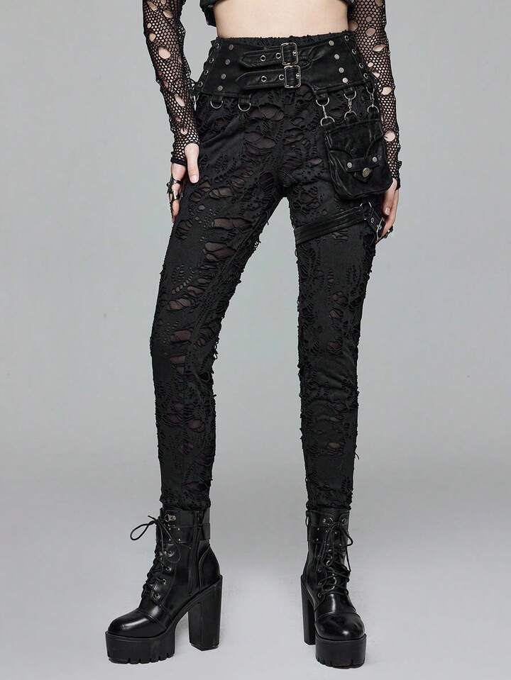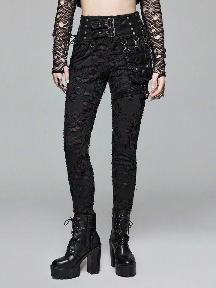 EDITION بنطلون جينز ضيق مهترئ وظيفي بطراز جوثيك بانك