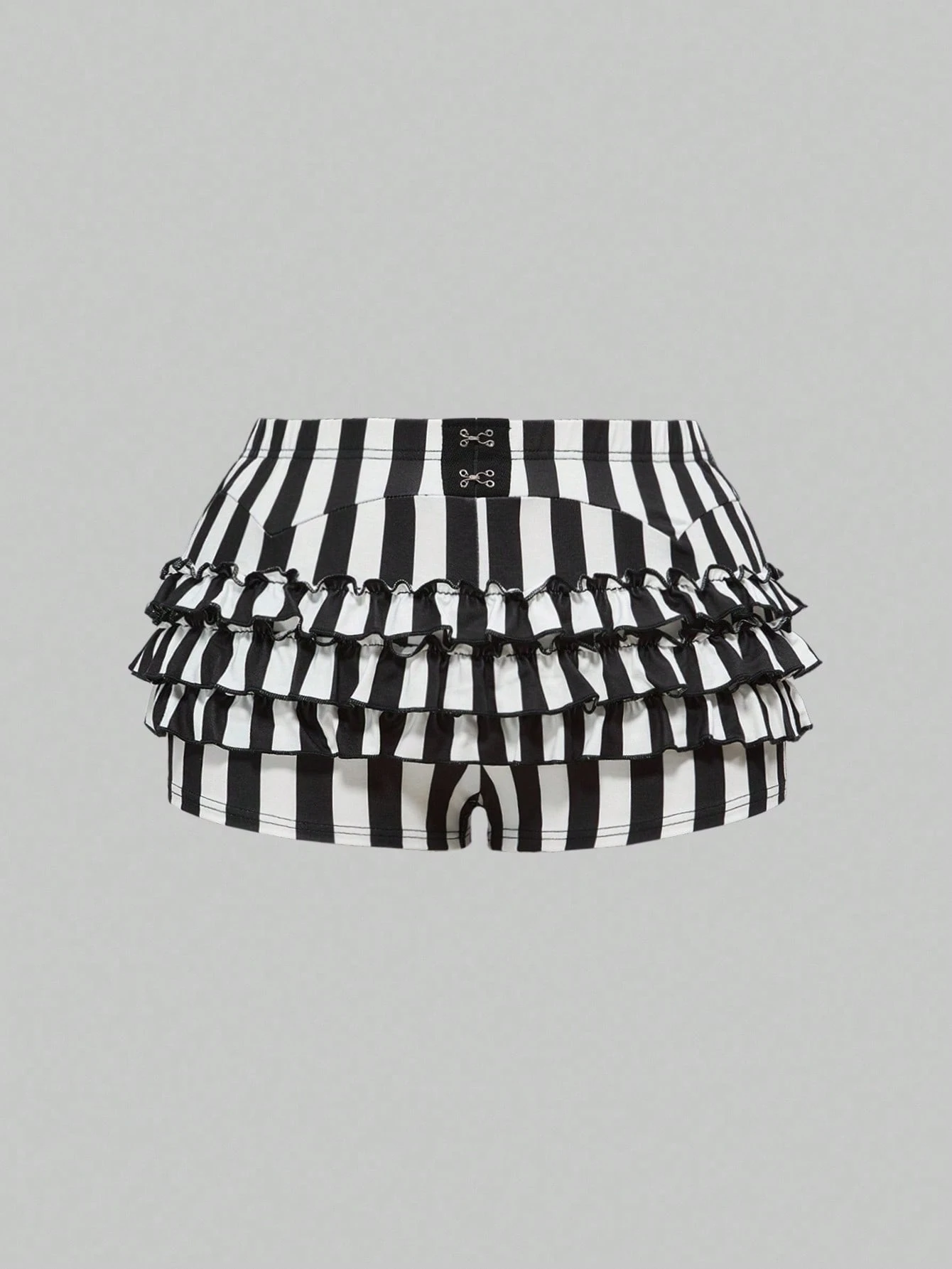 EDITION شورت أسود وأبيض مقلم ومزين بكشكشة للأحجام الكبيرة، صيفي