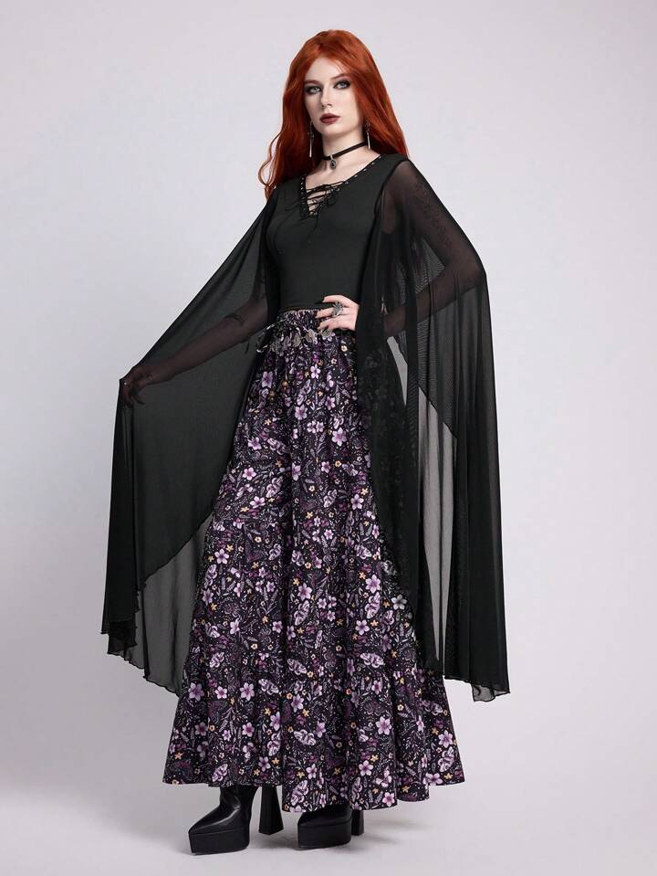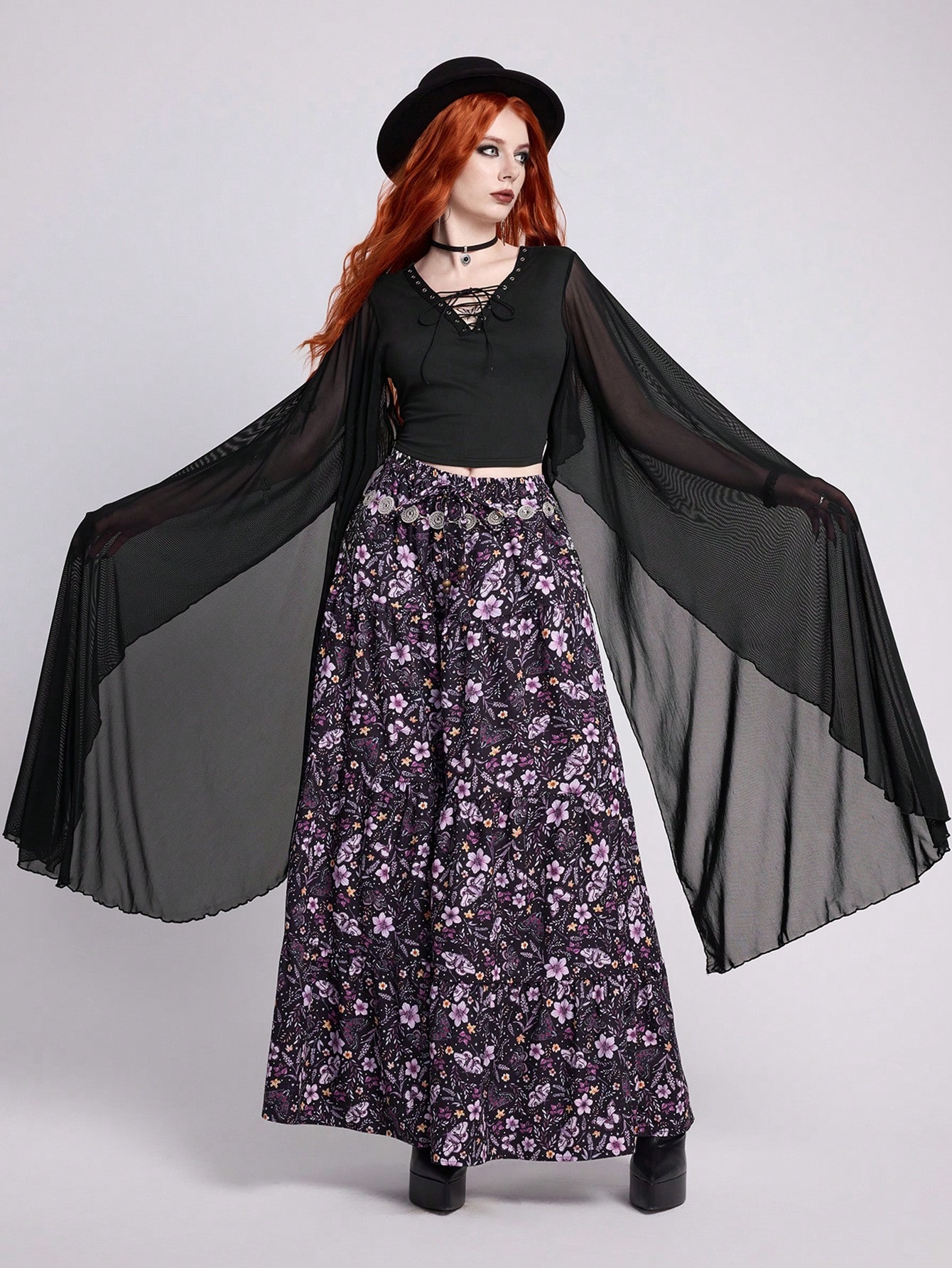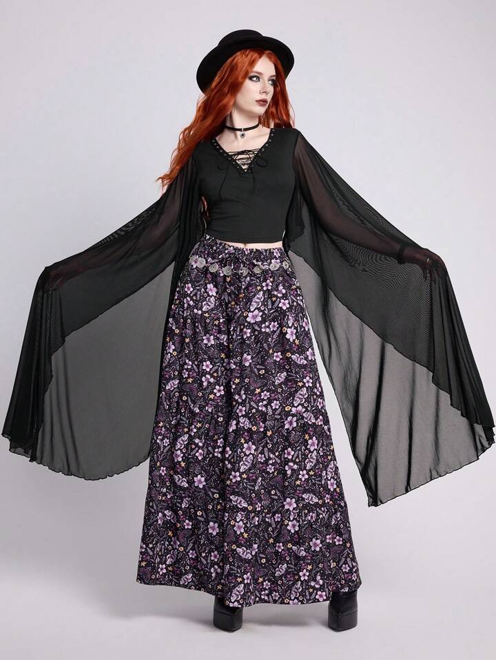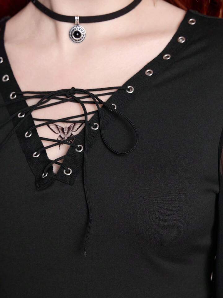 EDITION قميص بأكمام واسعة متموجة وربطة عنق ، بأسلوب جوثي للنساء، صيفي