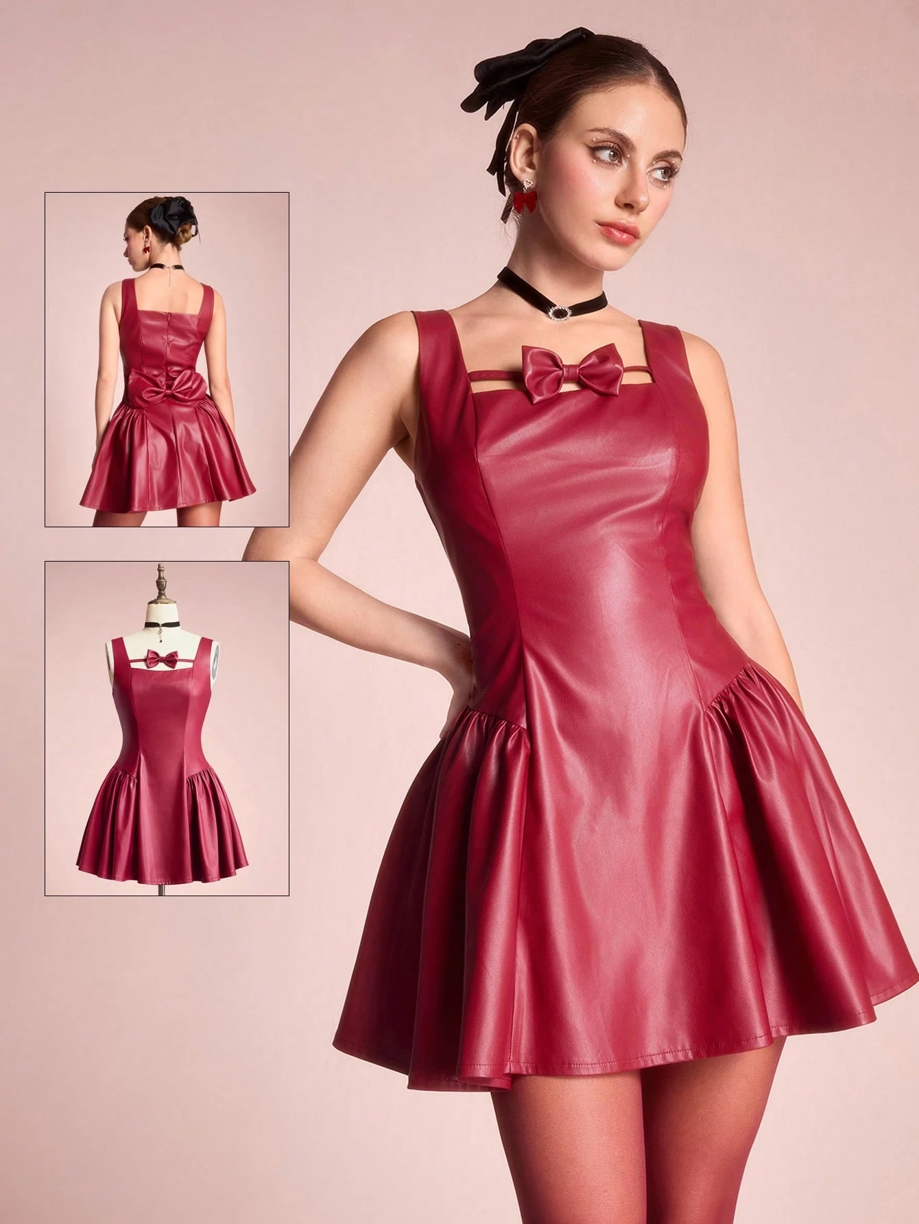 EDITION فستان قصير فاخر بتصميم عتيق مزين بفيونكة ثلاثية الأبعاد من قماش البولي يوريثان