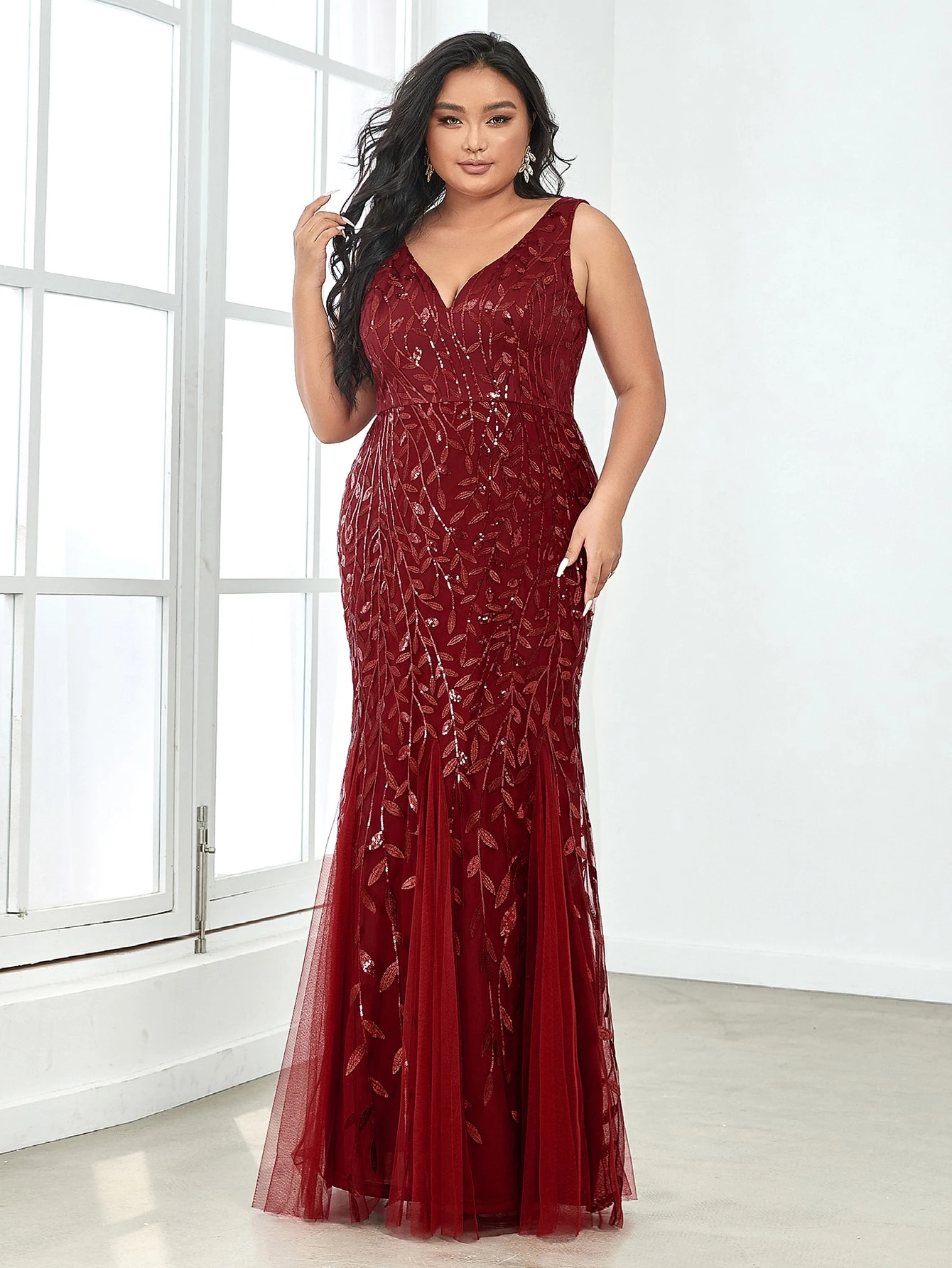 EVERPRETTY فستان حفلة مقاس كبير شبكي بنباتات بترتر