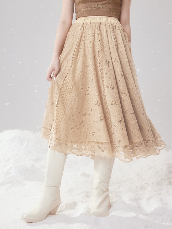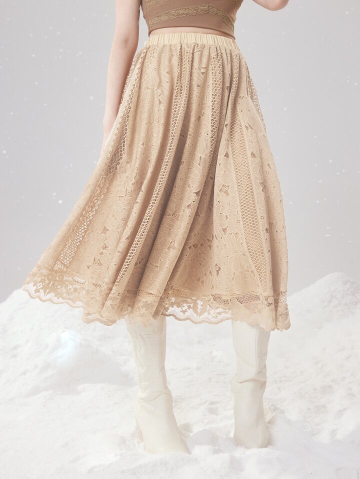 تنورة على شكل حرف A بتصميم كشكشة الدانتيل الأنيق