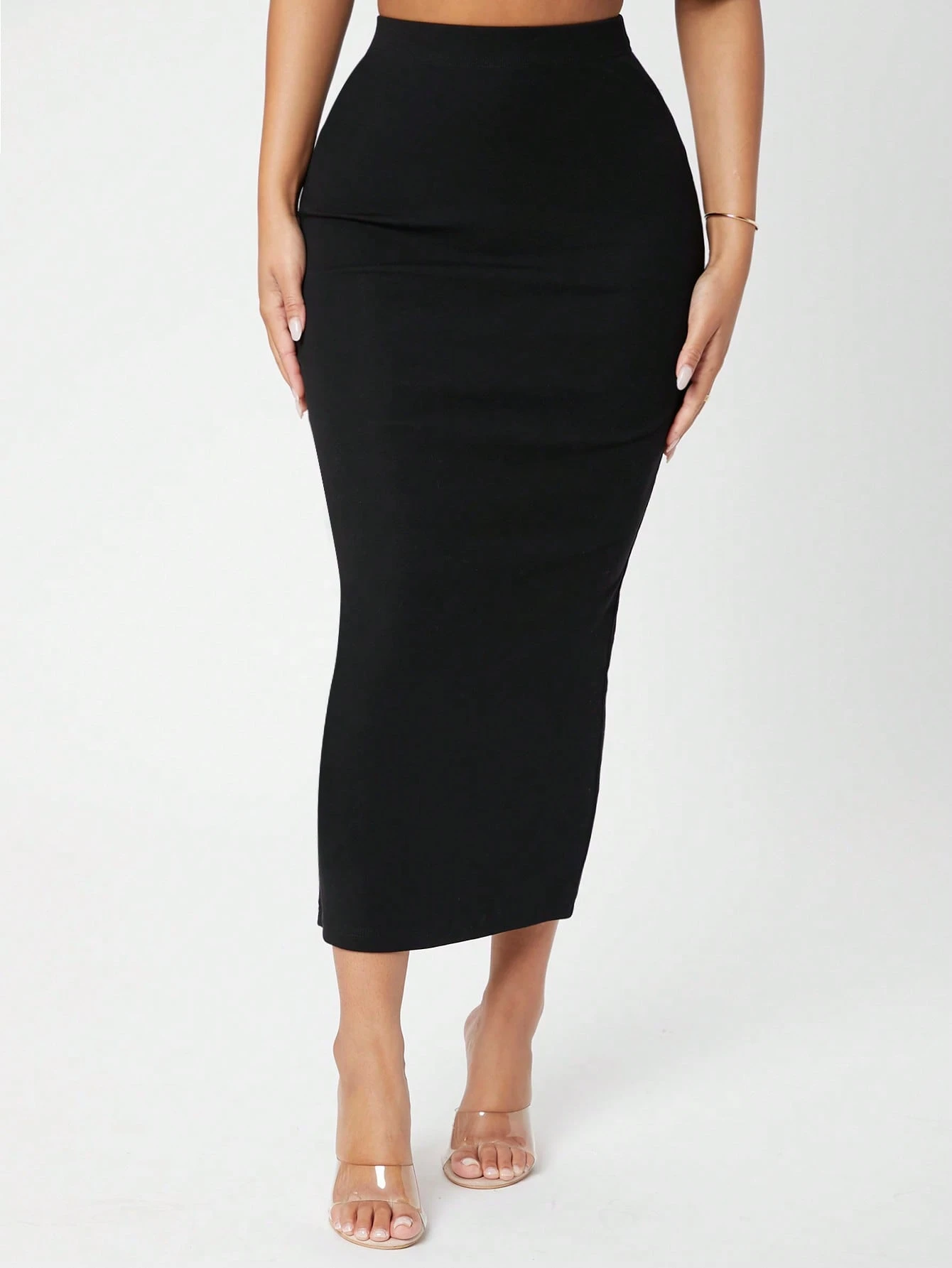 تنورة ذات خصر عالي بلون أنيق وقصة ضيقة، مناسبة للذهاب إلى العمل