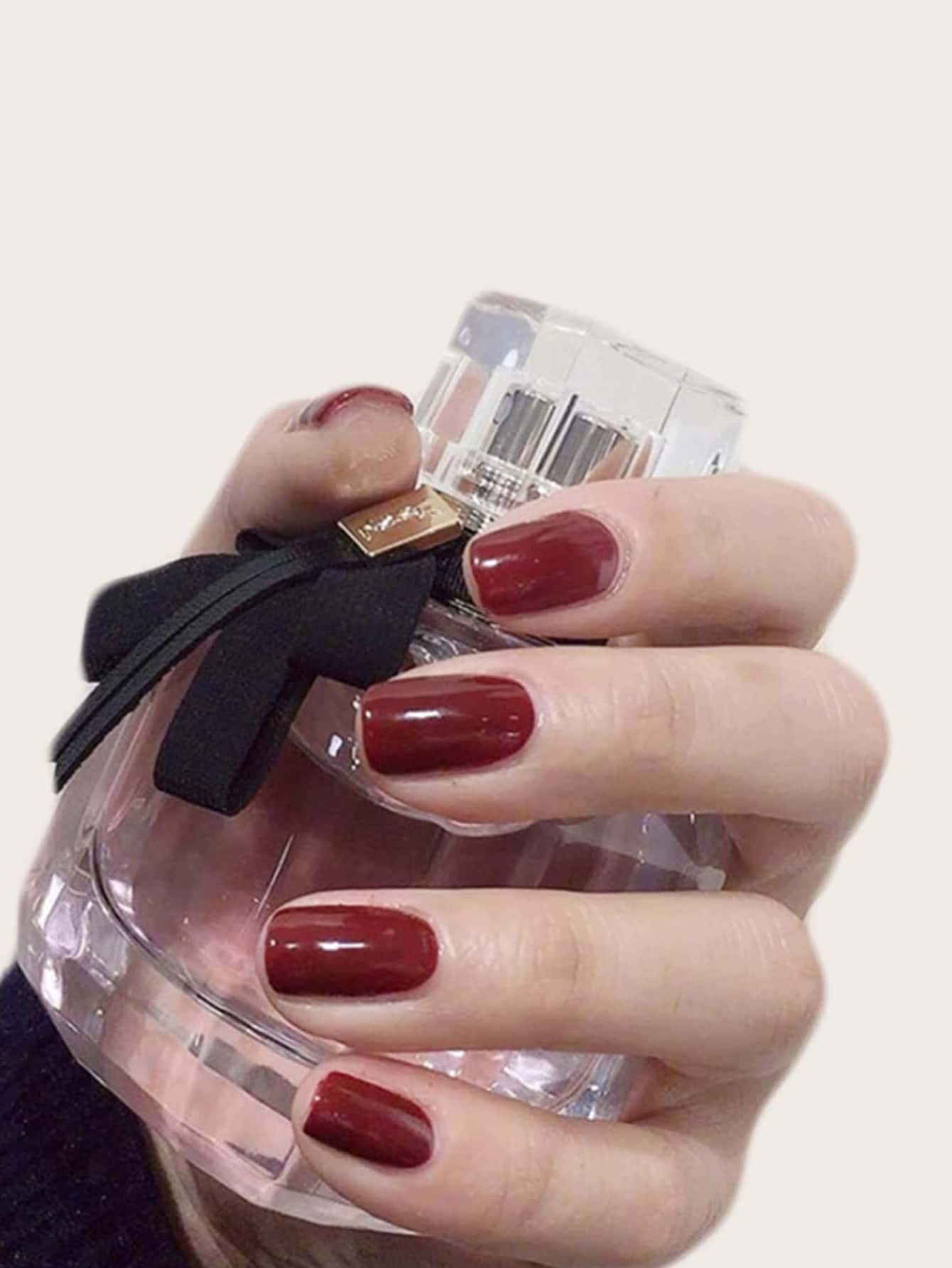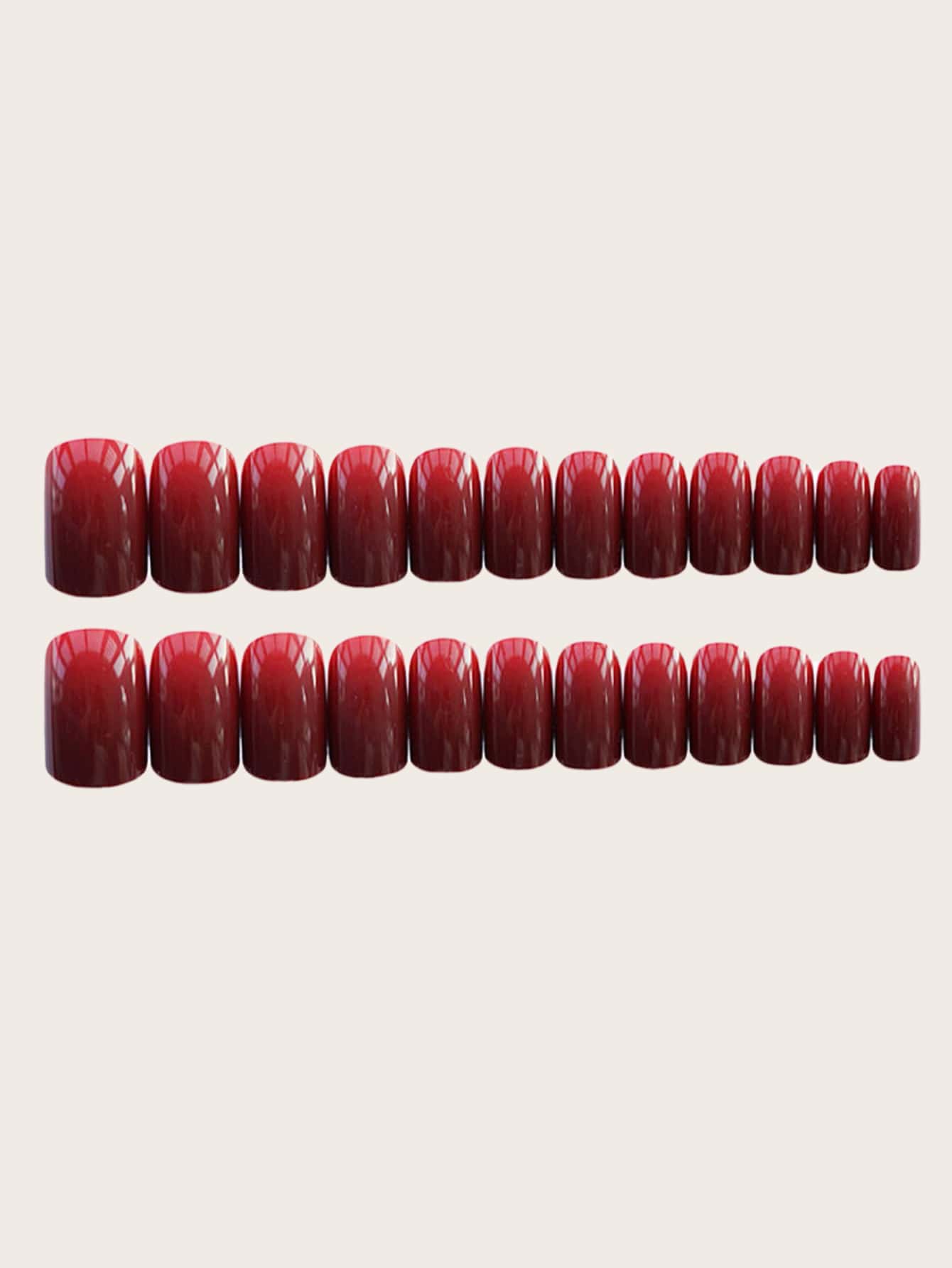 ارتقي بأناقتك مع أظافر صناعية لامعة، أظافر صناعية، طقم أظافر أكريليك حمراء مربعة طويلة لامعة بسيطة للتركيب، لوازم الأظافر