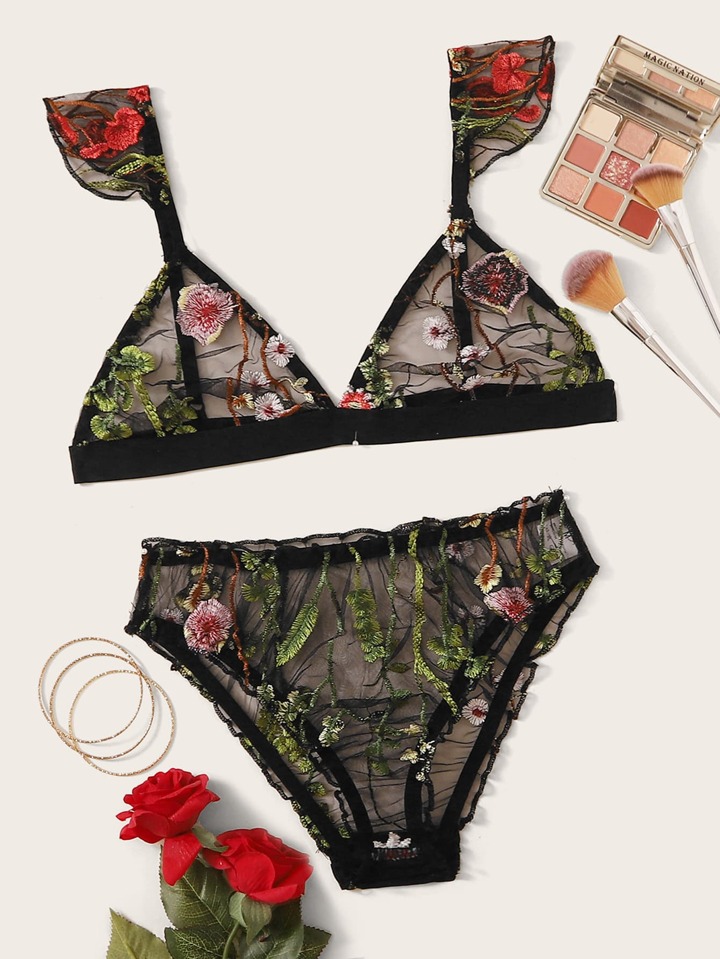 ملابس سكسي داخلية التطريز رسم الزهر رومانسي