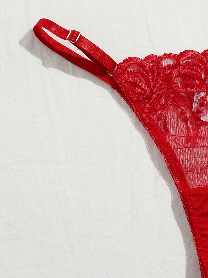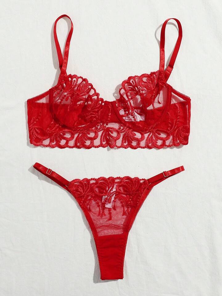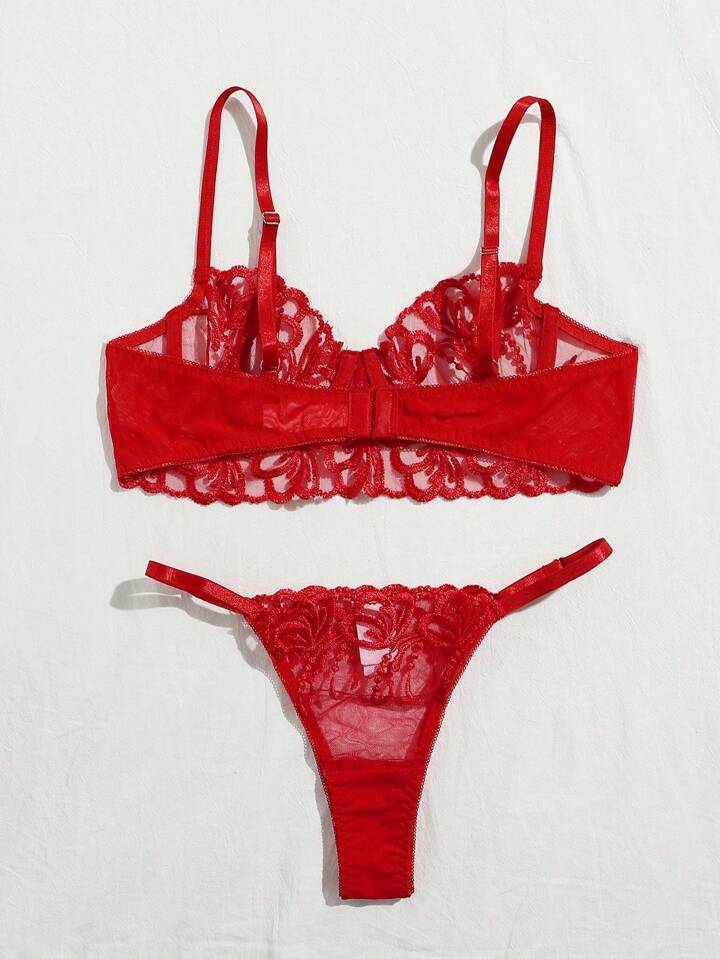 مجموعة لانجري صدرية و بنطلون دانتيل مطرز بأسلاك معدنية