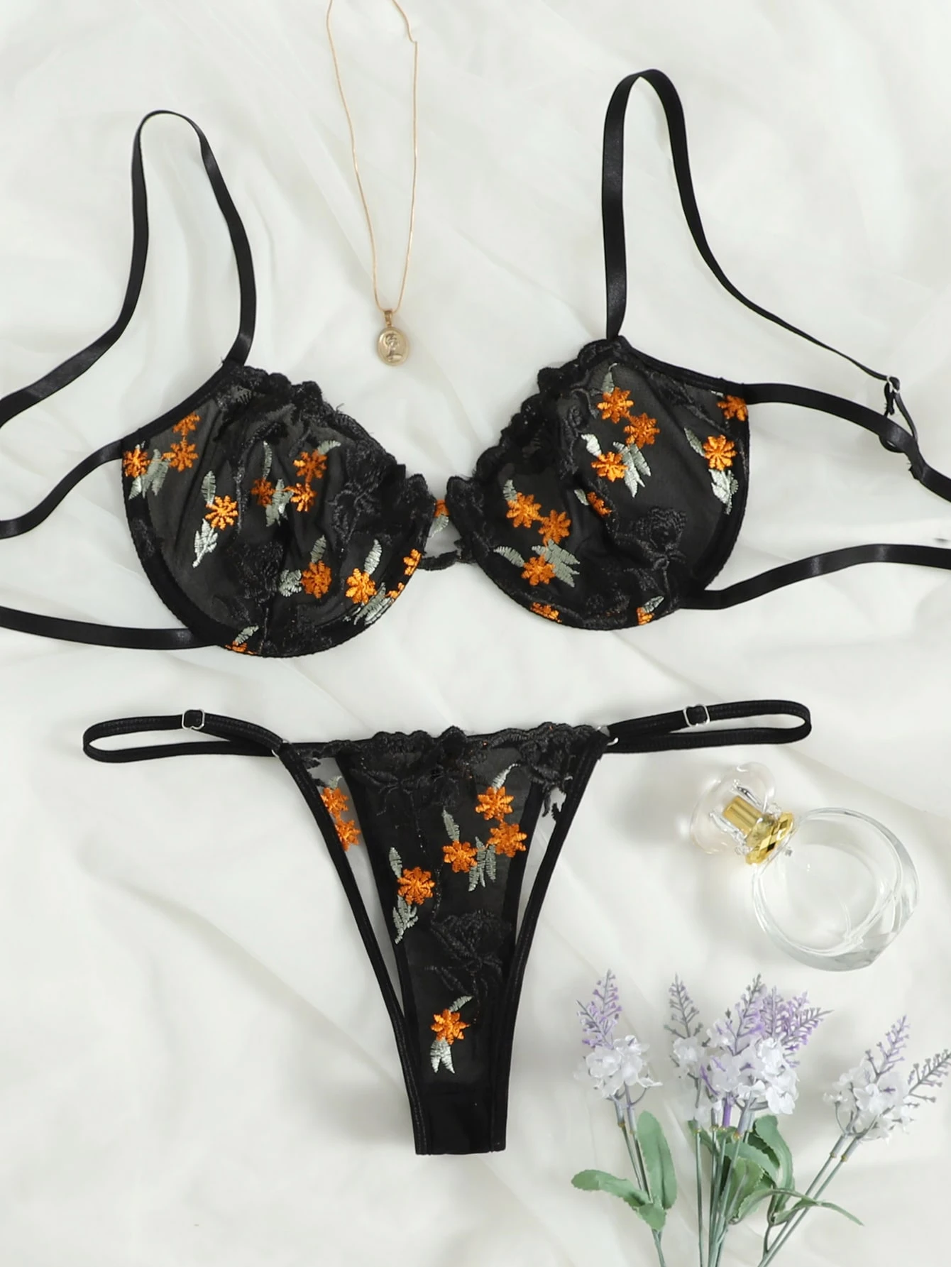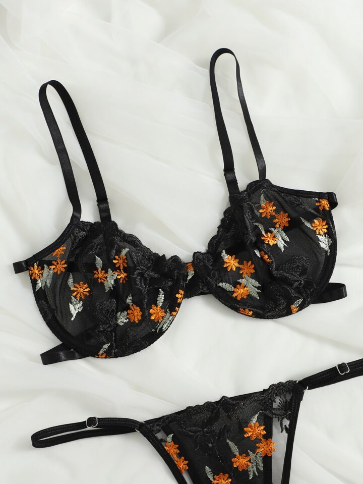 ملابس سكسي داخلية التطريز رسم الزهر رومانسي