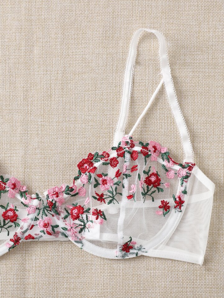 مجموعة دانتيل شفاف وحمّالة صدر بأسلاك وشريط للملابس الداخلية