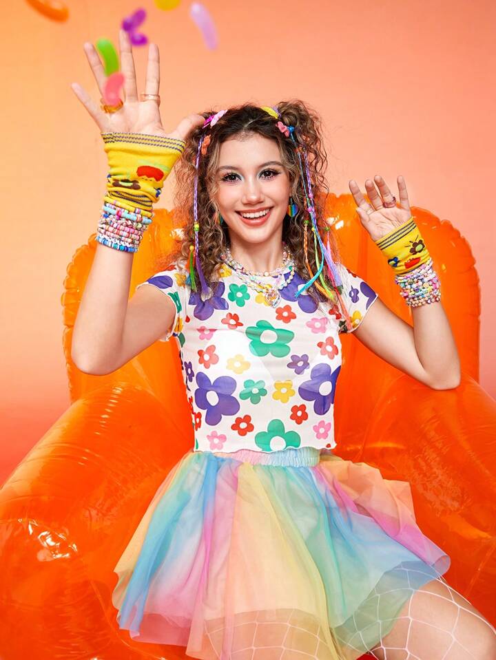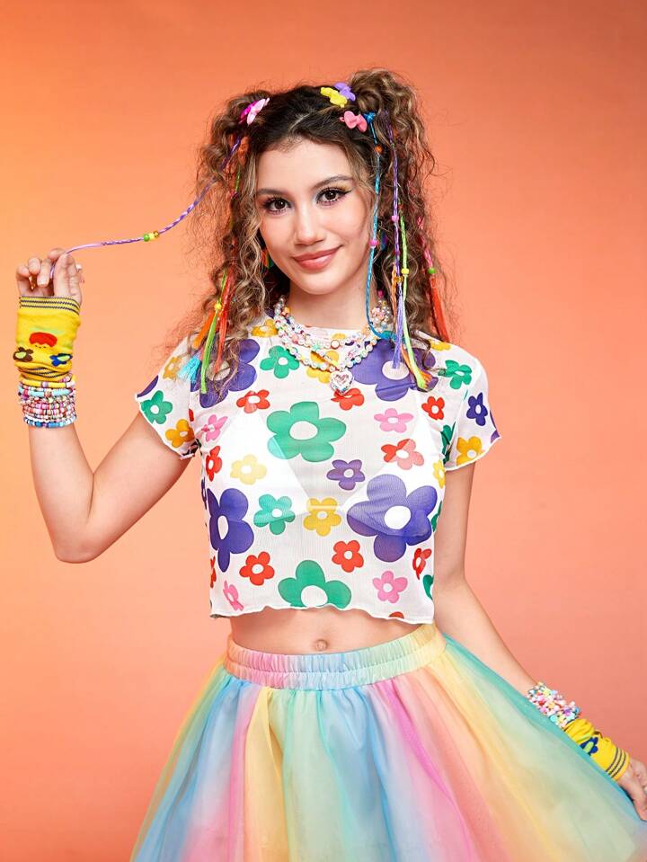 Emi Bee لباس علوي طباعة الأزهار شبكة